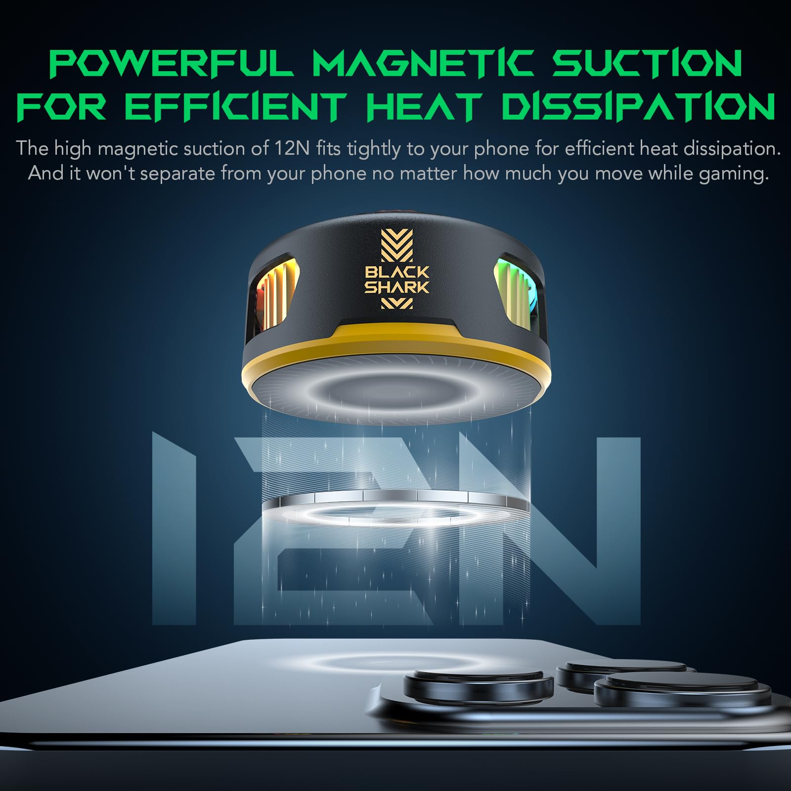 Black Shark FunCooler 5 Magnetic Cell Phone Cooler for Gaming, Portable Mobile Phone Cooling Fan with RGB Light, Cellphone Radiator for iPhone Magnetic Series/Android/Tablet/iPad (Black)