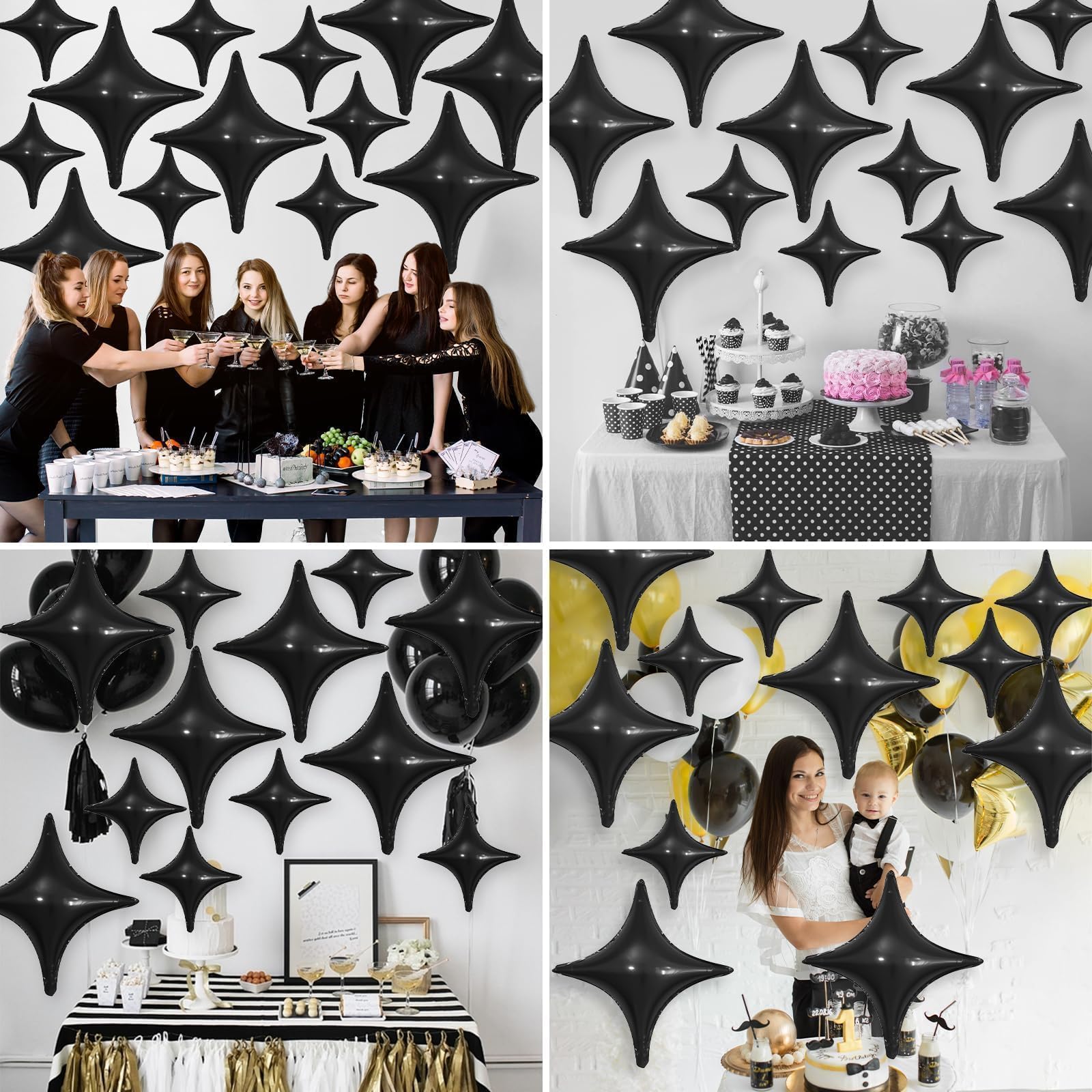 Black Star Balloons,12Pcs Four Angle Star Foil Balloons,26Inch and 10Inch Black Quadrangle Helium Polyester Film Balloon for Birthday Anniversary Baby Shower Wedding Party Decorations