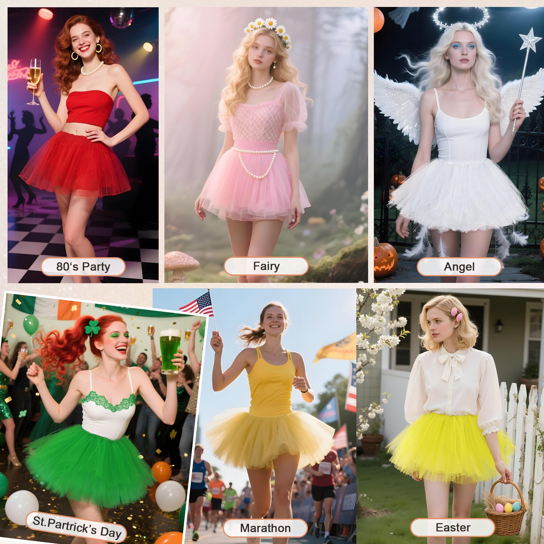 • 💃Tutus for women are perfect for stage performances, rehearsals, renaissance festivals, 80's concerts, Halloween, role-play costumes, costumes, costume parties and other special events, and can be easily mixed and matched