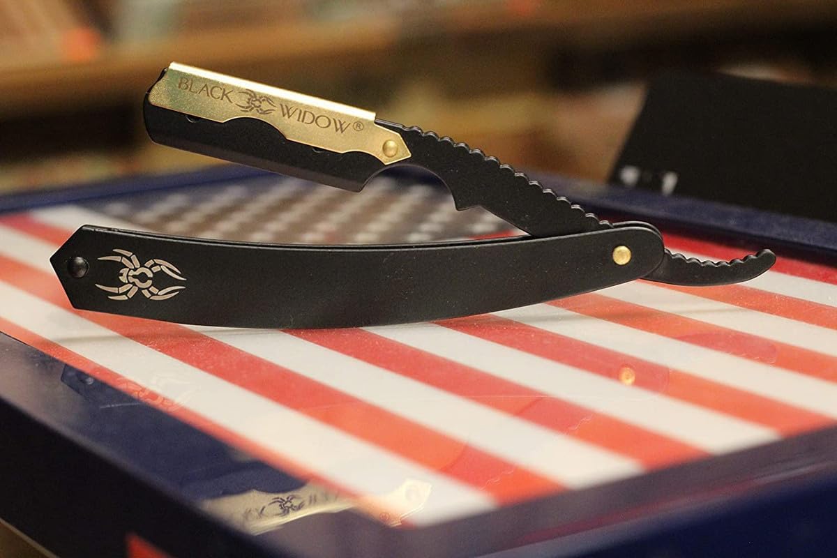 • COMFORTABLE GRIP; BALANCED WEIGHT - At 2.6 oz, the Black Widow straight edge razor causes less vibration from the razor edge while shaving. It also provides the perfect balance in your hand for easy maneuvering. The proper, balanced weight distribution prevents strain on the wrist; feels great in the hand