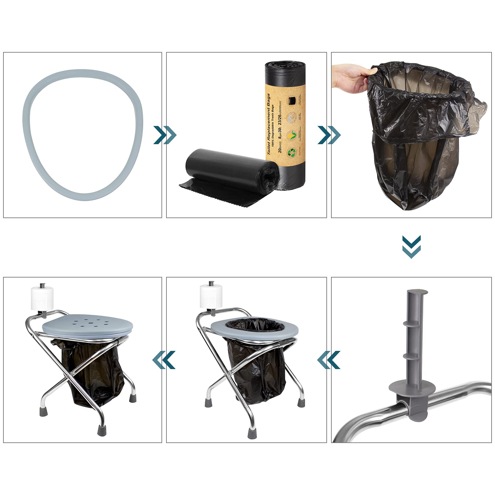 • EASY CLEANUP & NO MESS: Place the plastic ring on the seat, toilet bags will be held in place by a removable plastic ring. BLIKA portable toilet seats are perfect to be accompanied with 8-gallon size toilet replacement bags. After using, rinse the seat with water or wipe with paper as needed to keep clean.