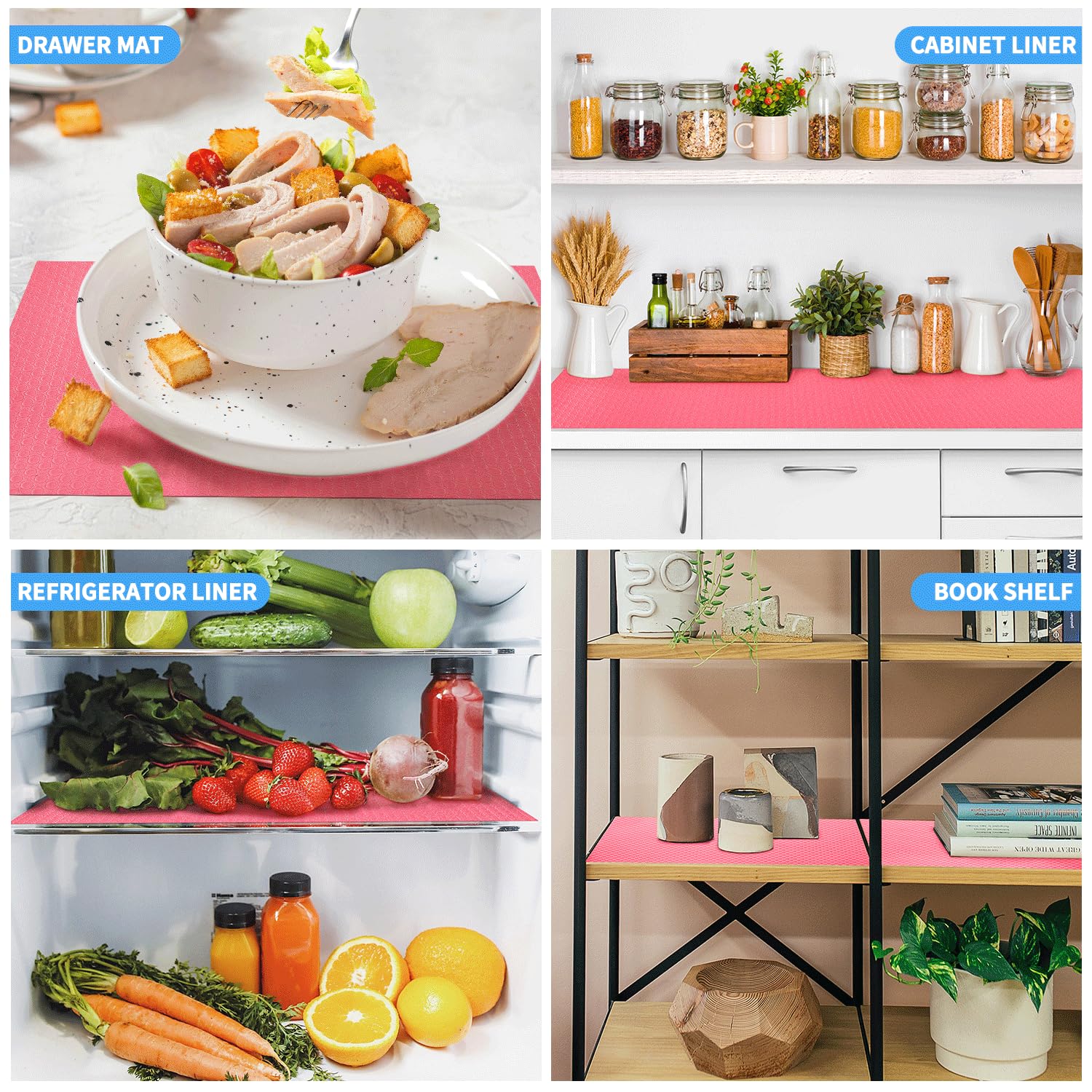• SHELF LINERS CLEAN: The main feature of this drawer liner is to keep your desktop, refrigerator, and cabinets are kept fresh and perfect.