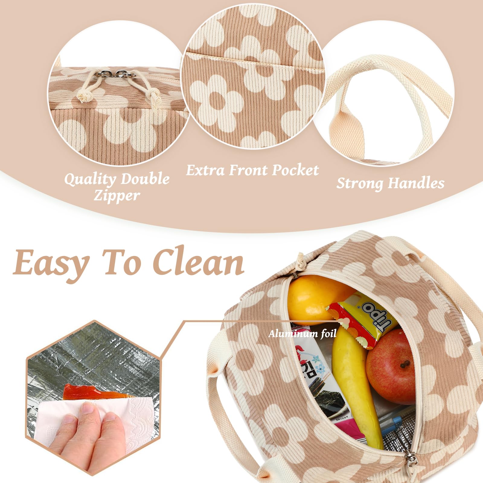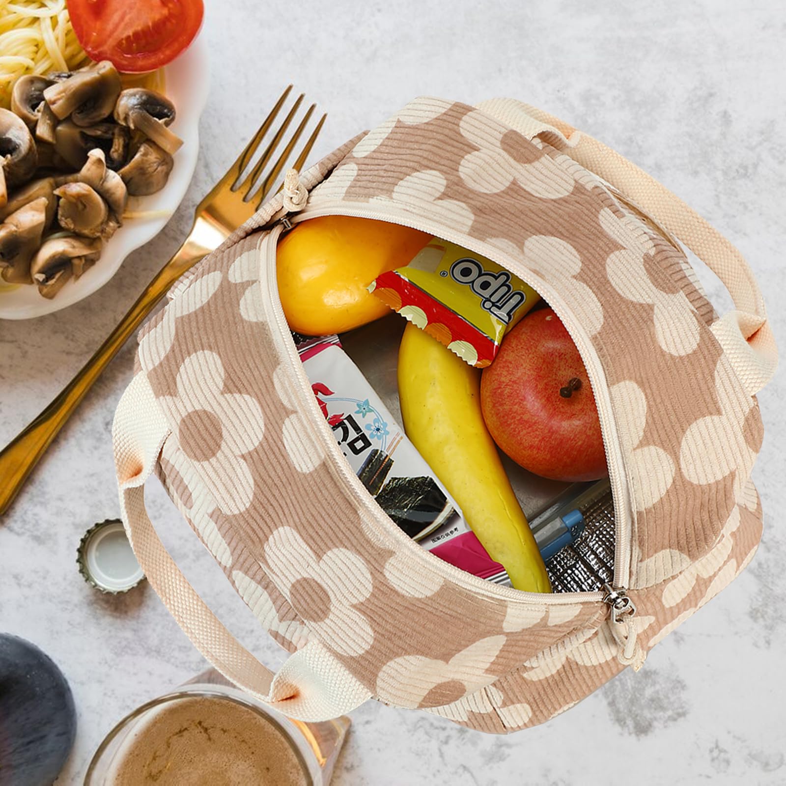 Bluboon Lunch Bag for Women Men Cute Corduroy Lunch Tote Bags Reusable Insulated Lunch Box Large Capacity Reusable Insulated Cooler for Work Picnic or Travel