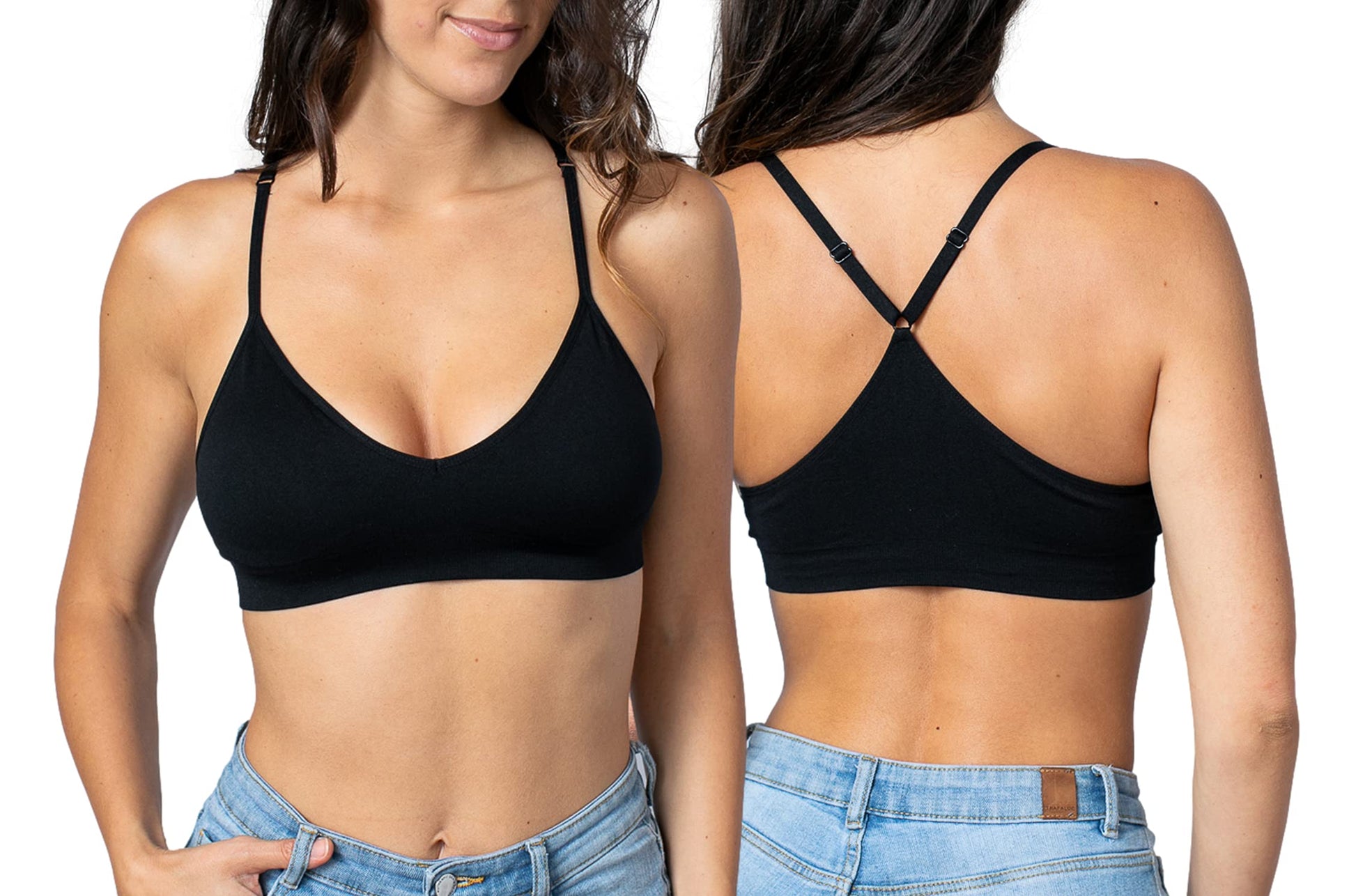 Blue 55 Women's Racerback Bralette Sexy Everyday Basic Deep V-Neck Wireless W/Removable Padding Bra (S/M, Black)