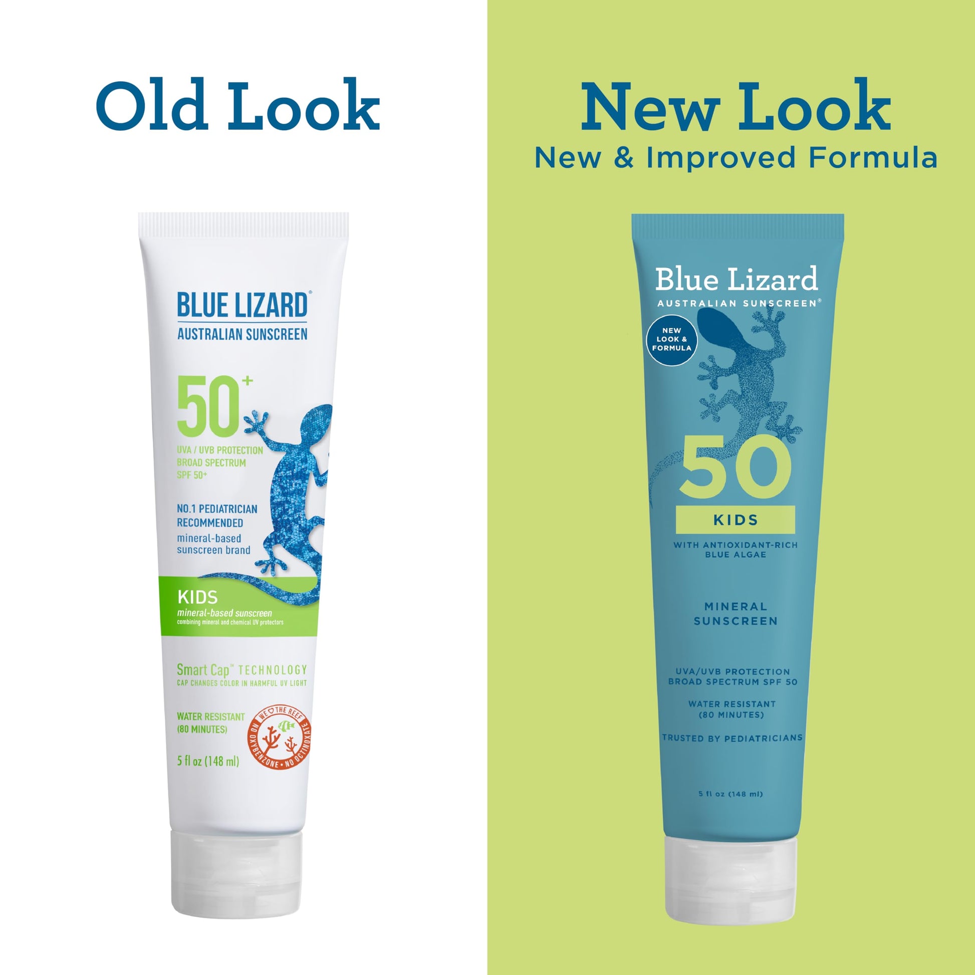 Details: Play sun safe with Blue Lizard Kids Mineral SPF 50 Sunscreen Lotion. Formulated with Zinc Oxide and Titanium Dioxide, this kid-friendly mineral sunscreen provides broad-spectrum, head-to-toe sun protection from harmful UV rays, including 98% of UVB rays. With up to 80 minutes of water resistance, this is the ultimate choice for more fun under the sun. With a new and improved formula, this 100% mineral sunscreen now includes antioxidant-rich Blue Algae. How to Use: Shake well prior to use. Apply liberally to dry skin 15 minutes before sun exposure. Reapply: after 80 minutes of swimming or sweating, immediately after towel drying, or at least every 2 hours. For topical use only. Keep out of reach of children. For children under 6 months of age: Ask a doctor. Sun protection measures: Spending time in the sun increases your risk of skin cancer and early skin aging. To decrease this risk, regularly use a sunscreen with a broad spectrum SPF value of 15 or higher and other sun protection measures including: Limit time in the sun, especially from 10 a.m. to 2 p.m. Wear long-sleeved shirts, pants, hats and sunglasses. Protect the product in the container from excessive heat and direct sun. Product may stain some fabrics. We ♥ the Reef: This product is formulated without Oxybenzone or Octinoxate to help protect fragile reef ecosystems. With our Smart Cap® Technology, you’ll always know when harmful UV rays are present. Watch the cap change color in sunlight as a reminder to stay sun safe wherever you are. Pediatricians trust Blue Lizard Australian Sunscreen, so you can have peace of mind that your kids’ skin is protected from the sun.