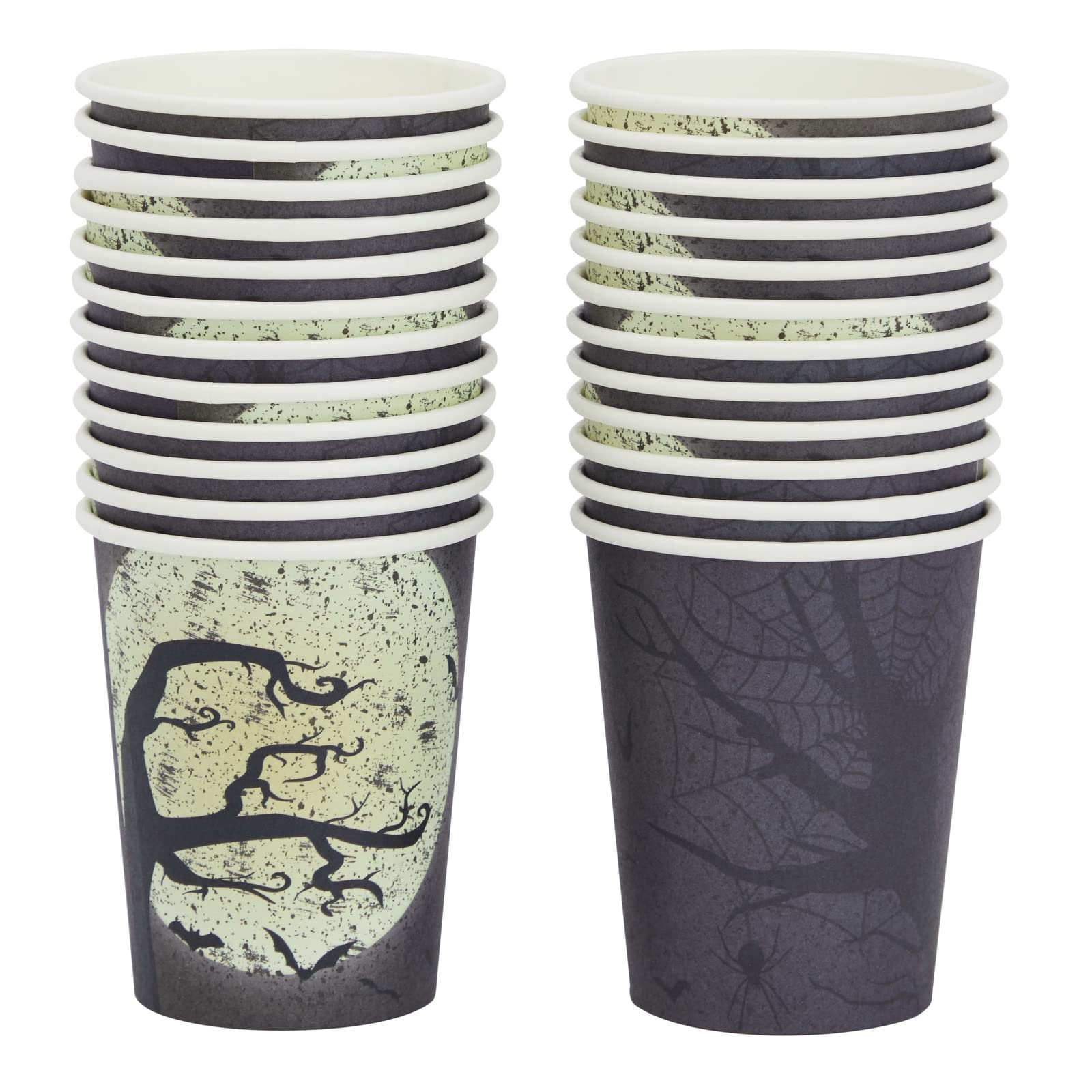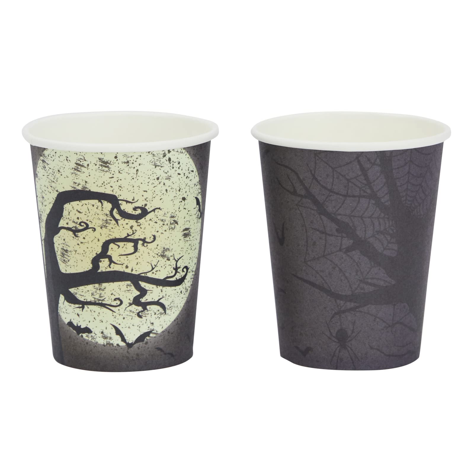 BLUE PANDA 144 Piece Halloween Dinnerware Set, Full Moon Night Sky Halloween Party Plates and Cups and Napkins Set for Spooky Gatherings and Witch Theme Parties (Serves 24)