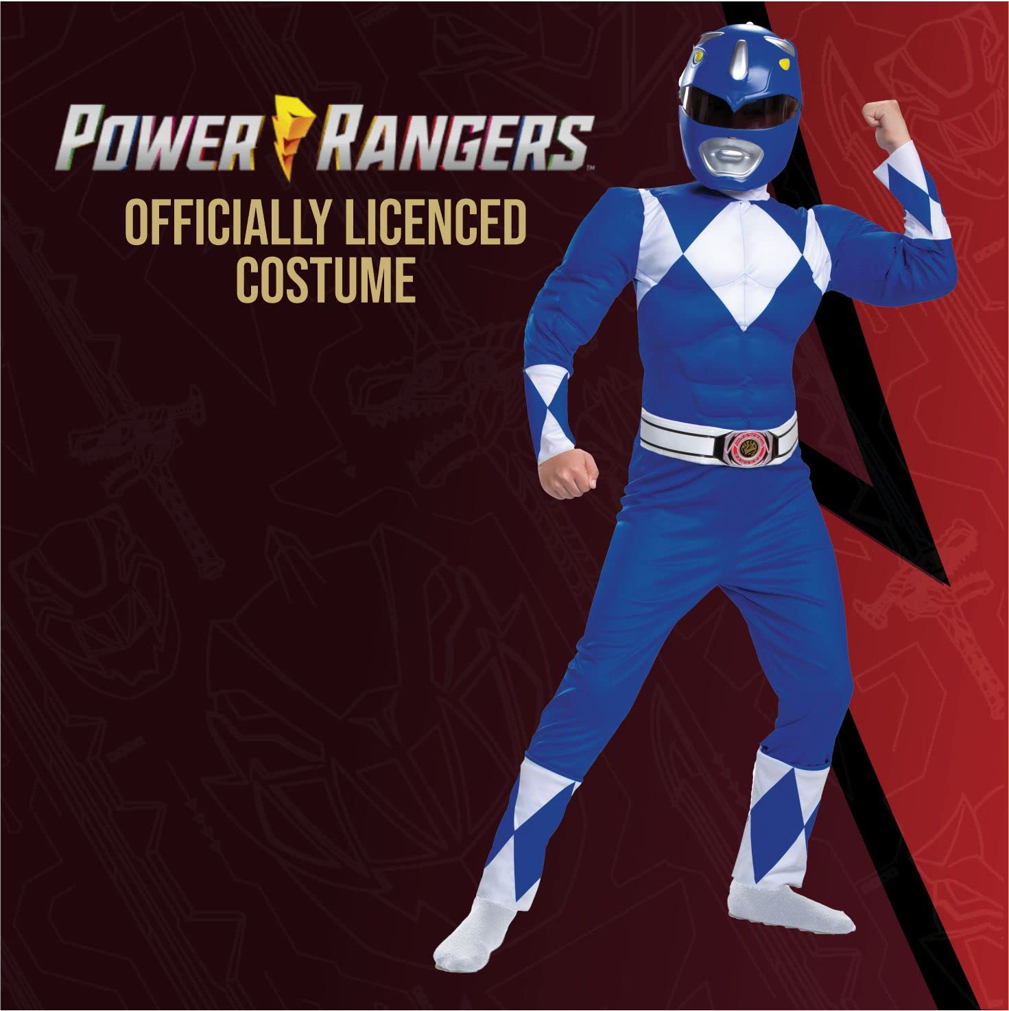 Blue Power Ranger Costume, Kids Size Beast Morphers Muscle Padded Character Jumpsuit and Mask, Classic Child Size Small (4-6)