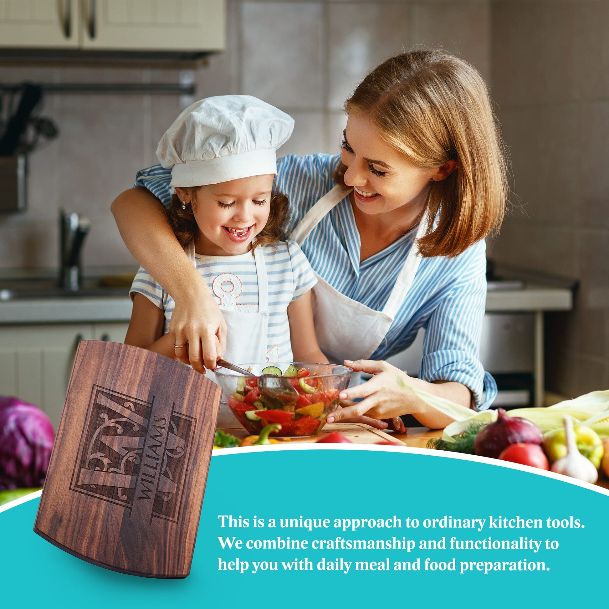 • PERFECT GIFT: Our personalized cutting boards are perfect for your home, and any food enthusiast will love having them around to prep fruits, veggies, and more! With the attractive laser engraving, it's perfect for personalized gifts. Perfect for dad and mom's birthday, wedding gifts, anniversary gifts, housewarming gifts, couple gifts, and more.