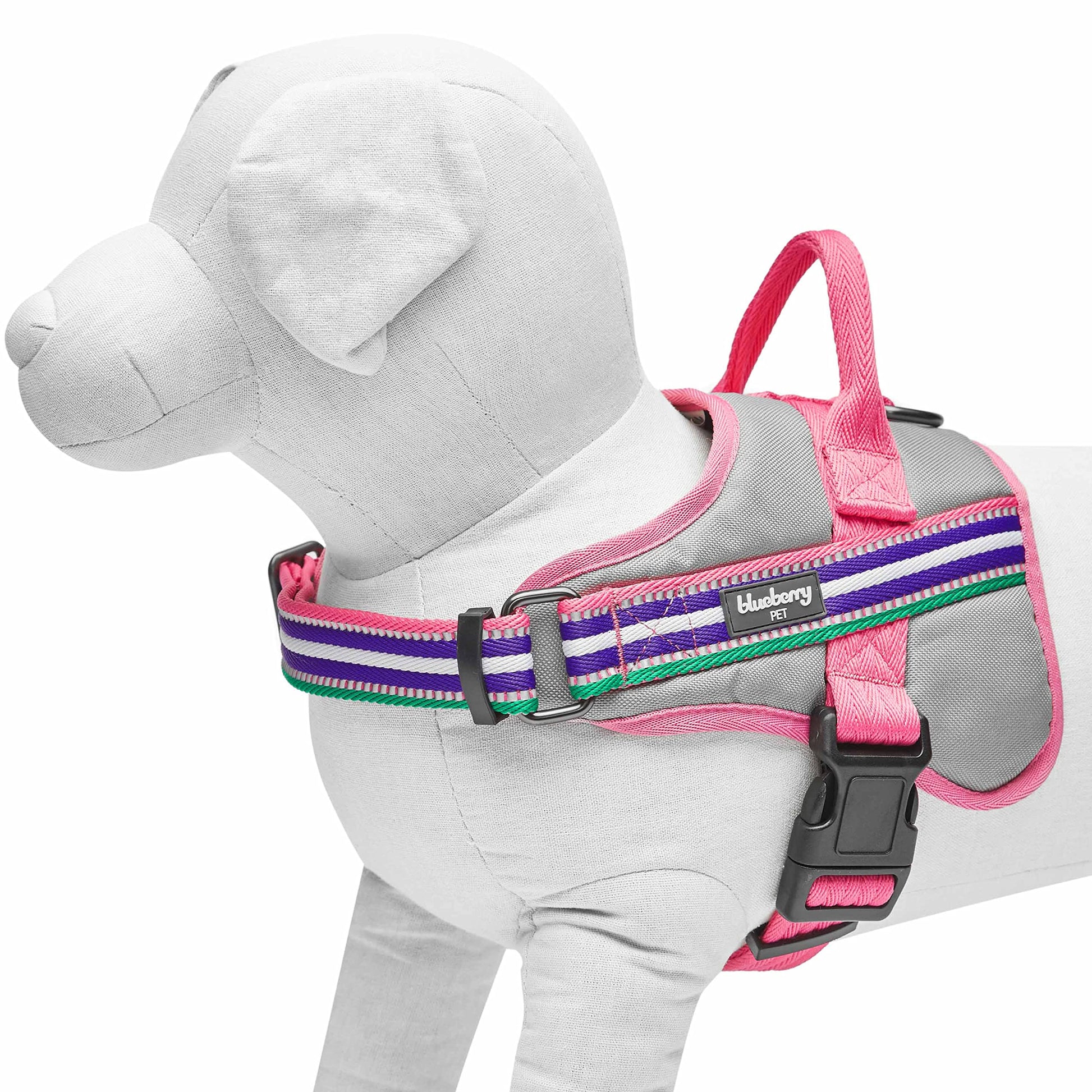 Blueberry Pet Soft 3M Reflective Dog Harness Vest | Mesh Padded No-Pull Harness with Back Clips | Multicolor Stripe in Pink, Emerald and Orchid| Adjustable for Large Dogs