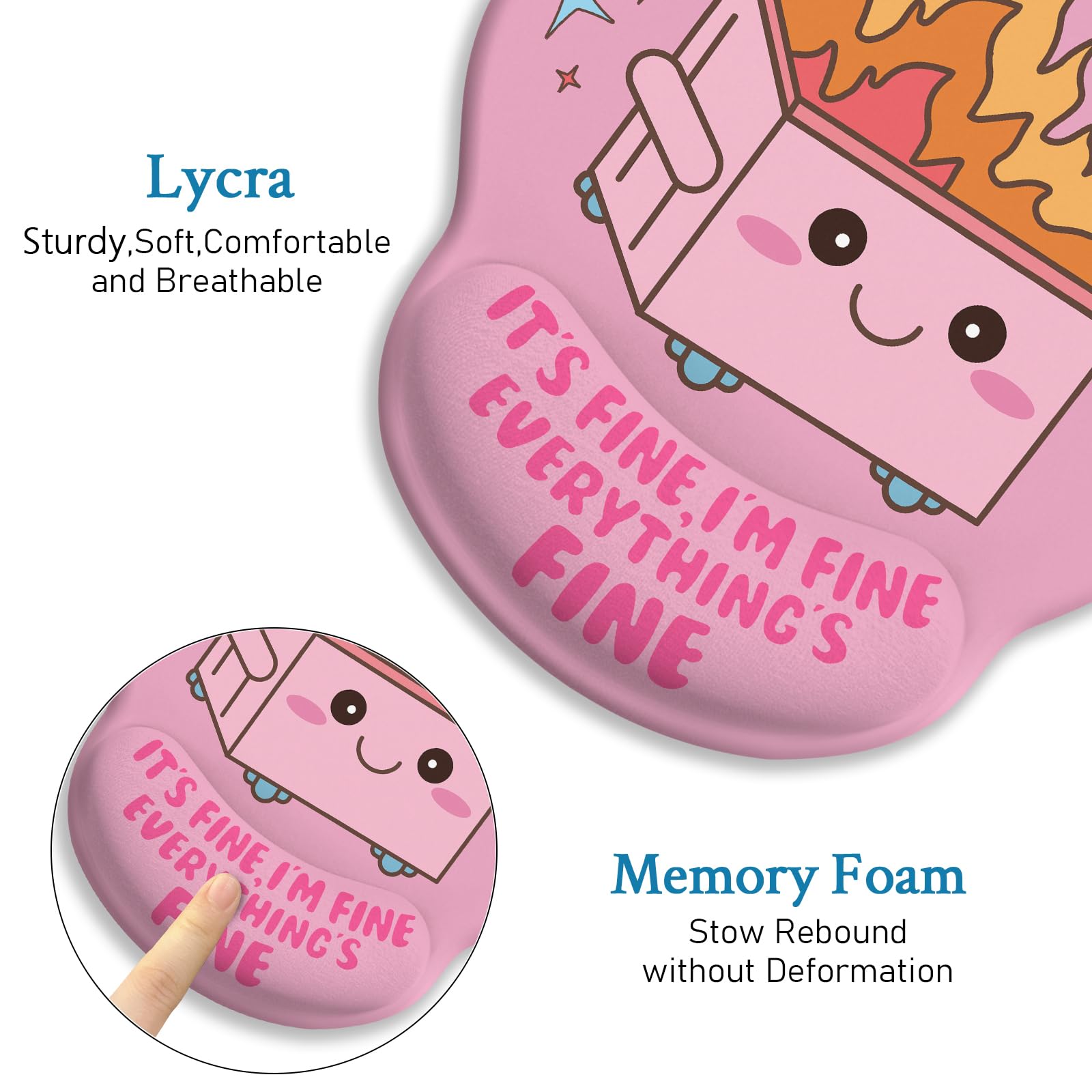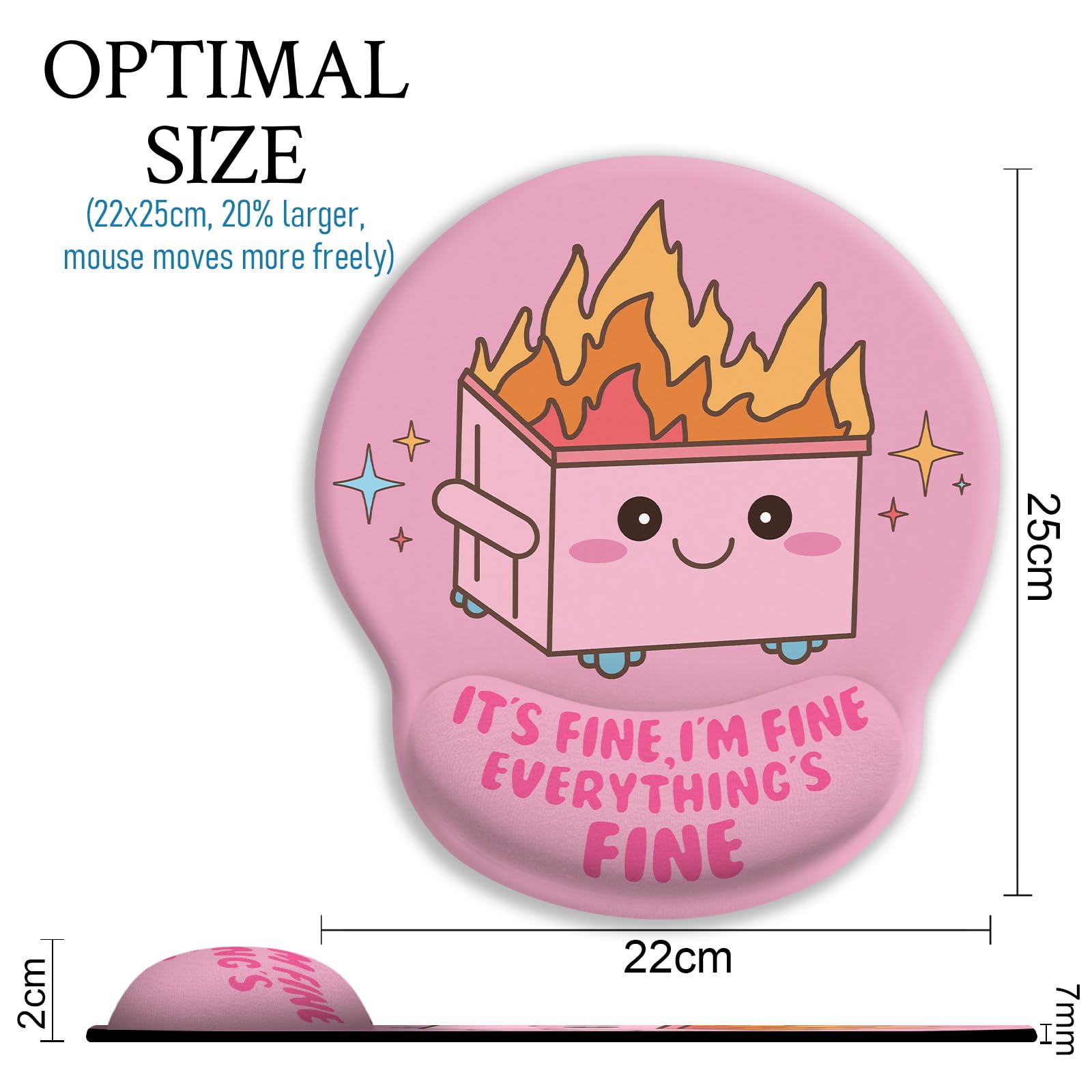 • Novel design: Mouse pad with wrist support has clear patterns and unique styles, which design with stylish print: it's fine I'm fine everything is fine. Mouse pads for desk is an excellent office desk accessory and a good companion for learning, working, and playing games. Add more personality to your office
