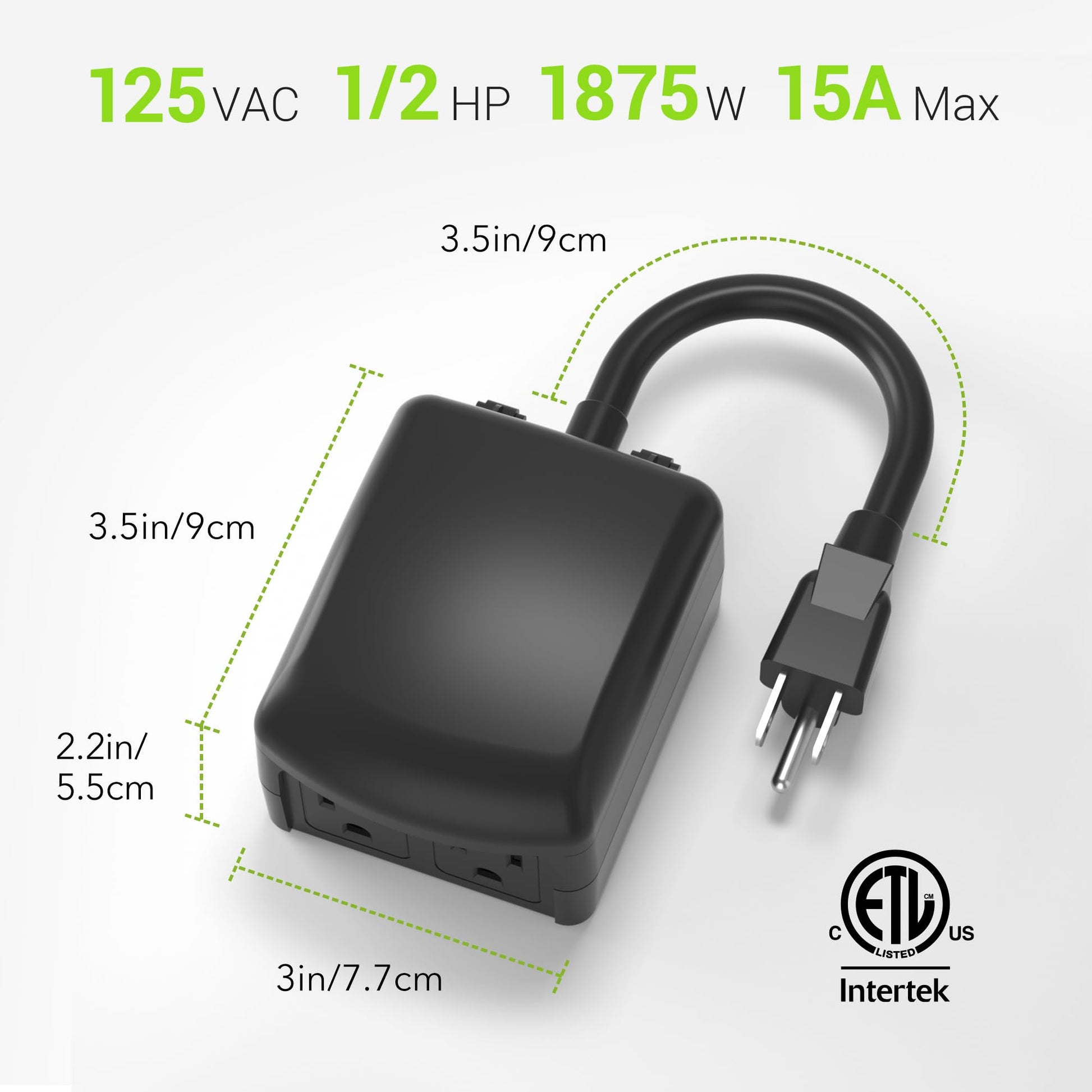 • Two 3-prong grounded outlets and 6.8 inch cord for use with devices like Christmas lights, fountain timers, patio and yard lights, as well as holiday decorations. (Not compatible with pool pumps)