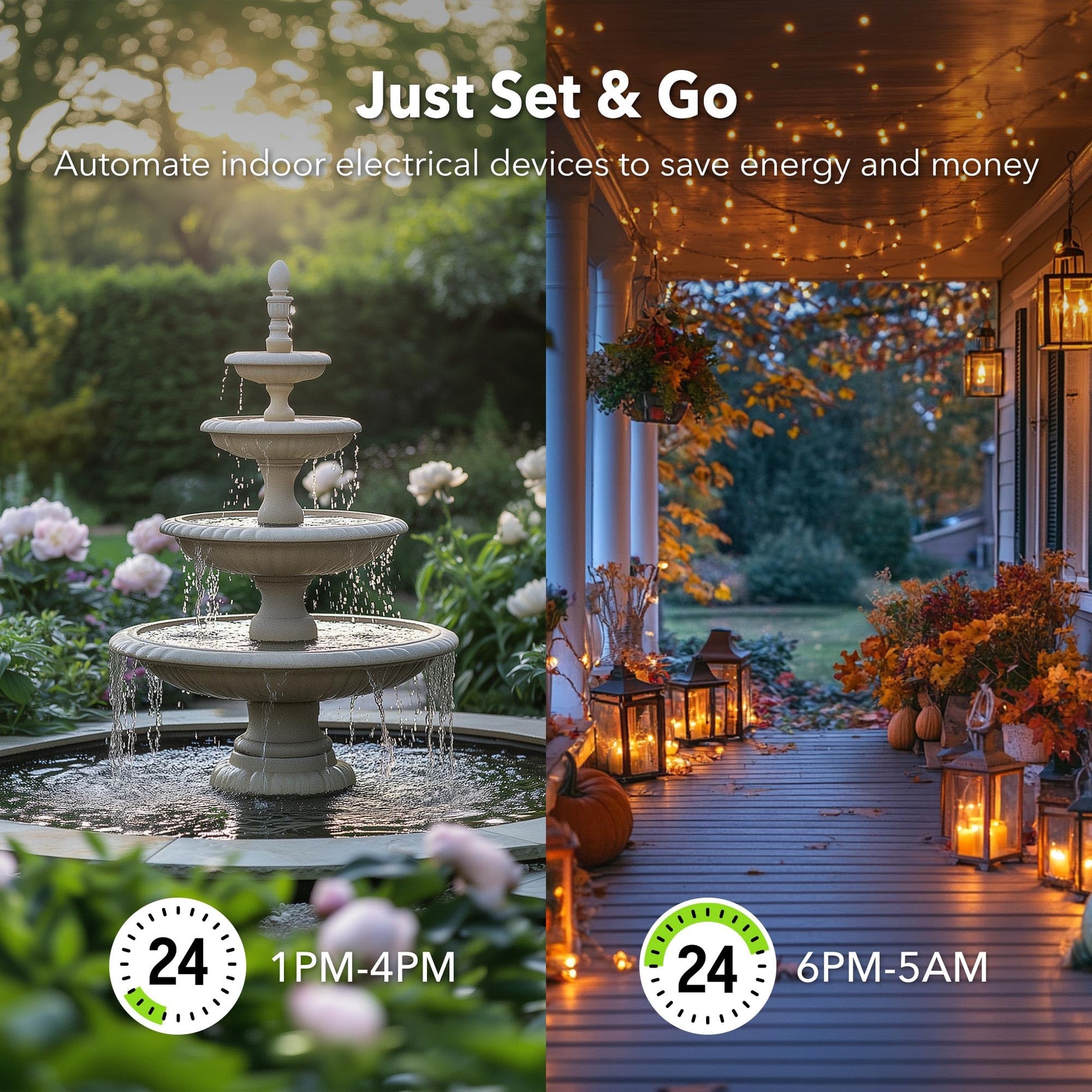 • 【Easy Setup No Complex Programming】This outlet timer outdoor requires no complicated programming—simply adjust the pins to set ON and OFF times. As a timer for lights, it offers automatic control that saves time, effort, and energy.