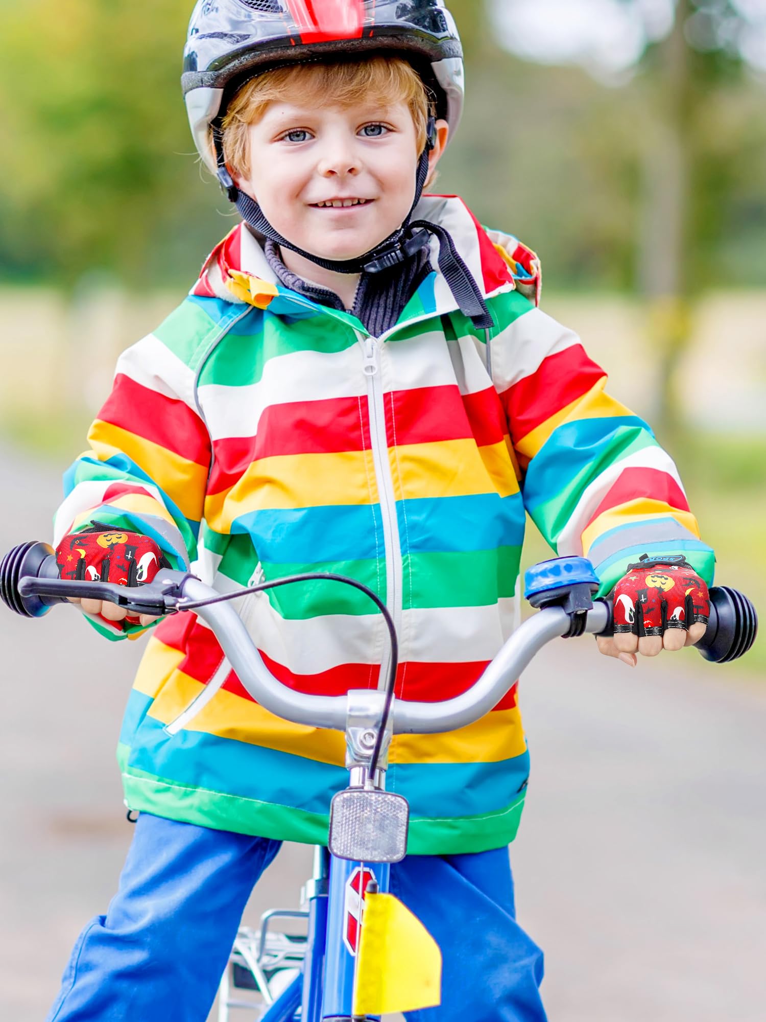 Boao 3 Pairs Kids Bike Gloves Kids Half Finger Fingerless Workout Gloves Non-Slip Gel for Bike Motorcycle(Halloween 1,3-5 Years)