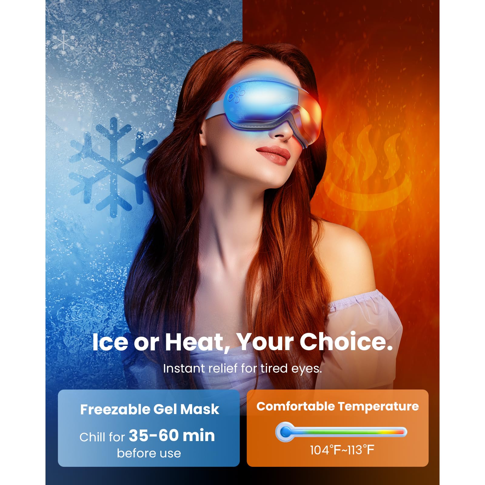 • Comfort Cooling Therapy - Our cooling gel mask is crafted from advanced materials to ensure both comfort and effectiveness. This removable gel mask can be placed in the freezer for 35-60 minutes, then used with the EyeOasis 3 Eye Massager to deliver soothing cooling compression to alleviate puffiness, red eyes, eye pain, and dry eyes caused by prolonged screen exposure. Additionally, the cooling gel mask can be used independently as a relaxing eye mask
