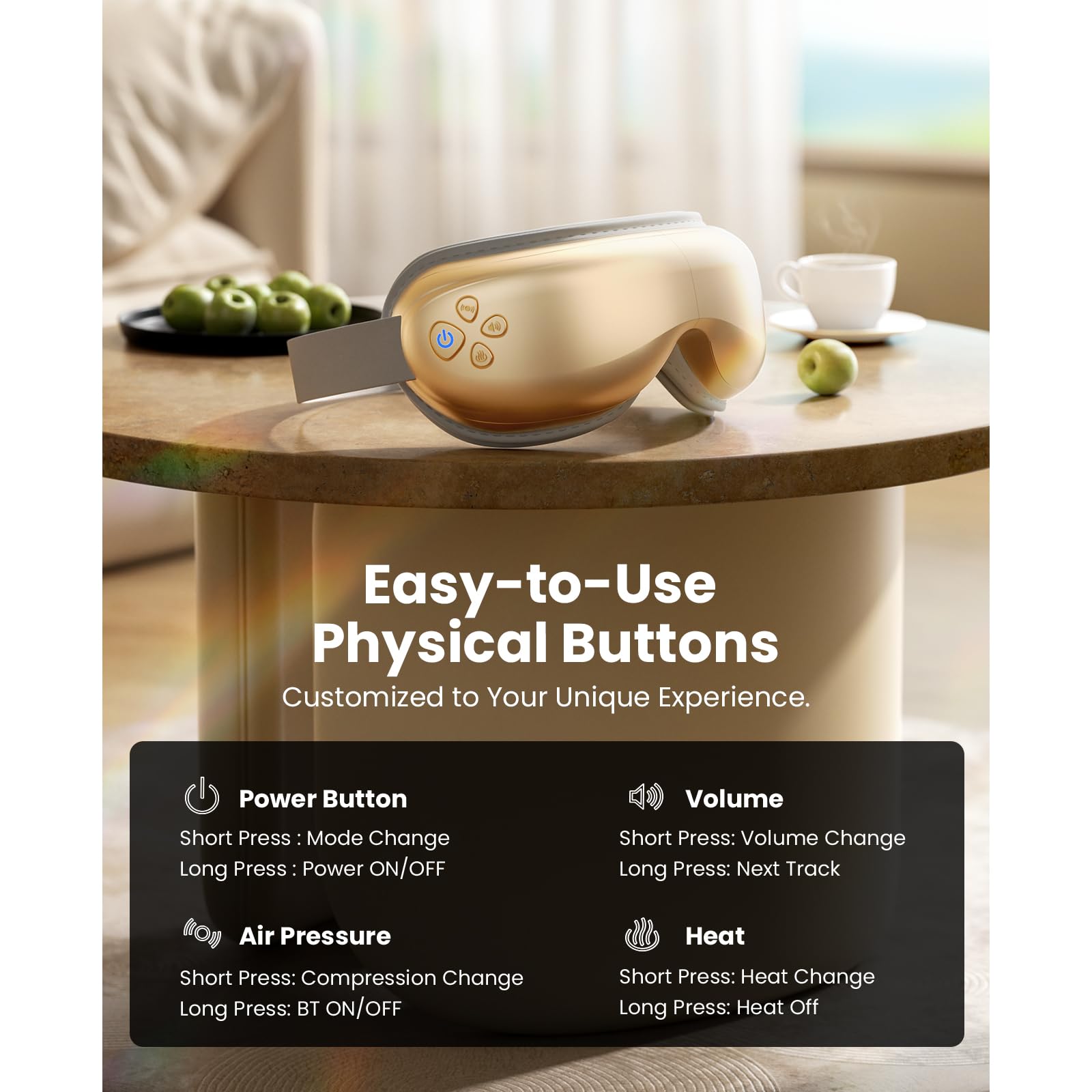 • Indulge in Maximum Comfort with Custom Settings - Experience the ultimate comfort and relaxation with our adjustable 3-level compression and 2-level heat settings. Choose from soft, moderate, or strong compression intensity to suit your needs. You can also enjoy the soothing warmth of 104℉(Low Heat) for a gentle effect or go for a deeper heat of 113℉ (High Heat) to help improve blood circulation, reduce eye fatigue, and encourage a sense of calm and tranquility