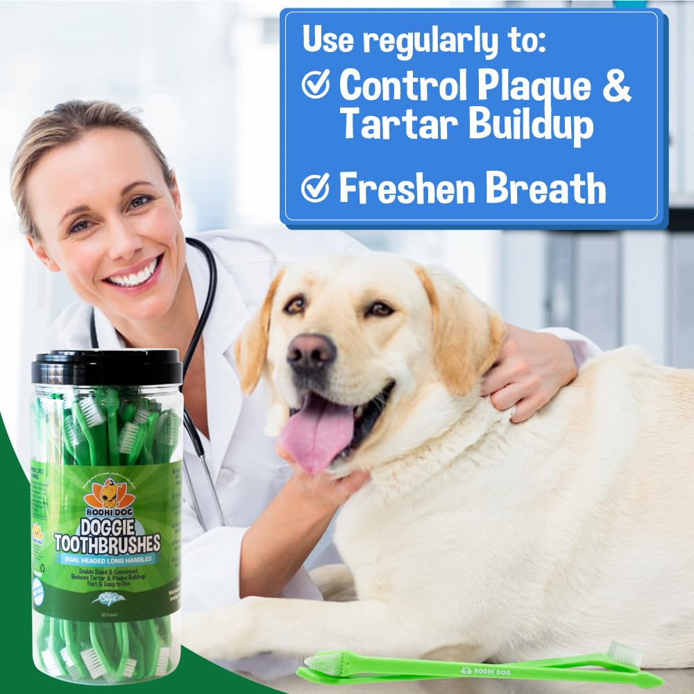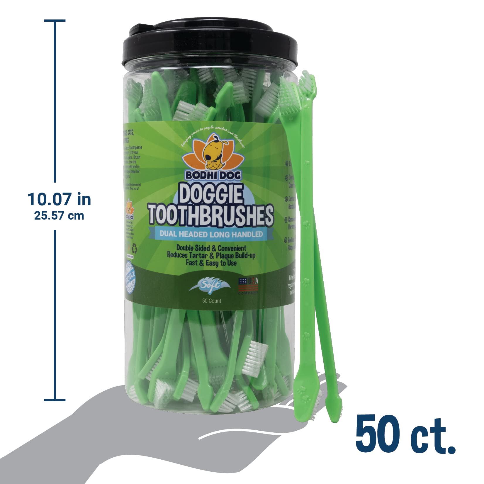 Bodhi Dog Dual-Headed Toothbrush for Dogs & Cats - Soft Bristles for Gentle Pet Dental Care - Puppy & Adult Teeth Cleaning - Easy-to-Use Design for Healthy Gums & Fresh Breath (50 Count)