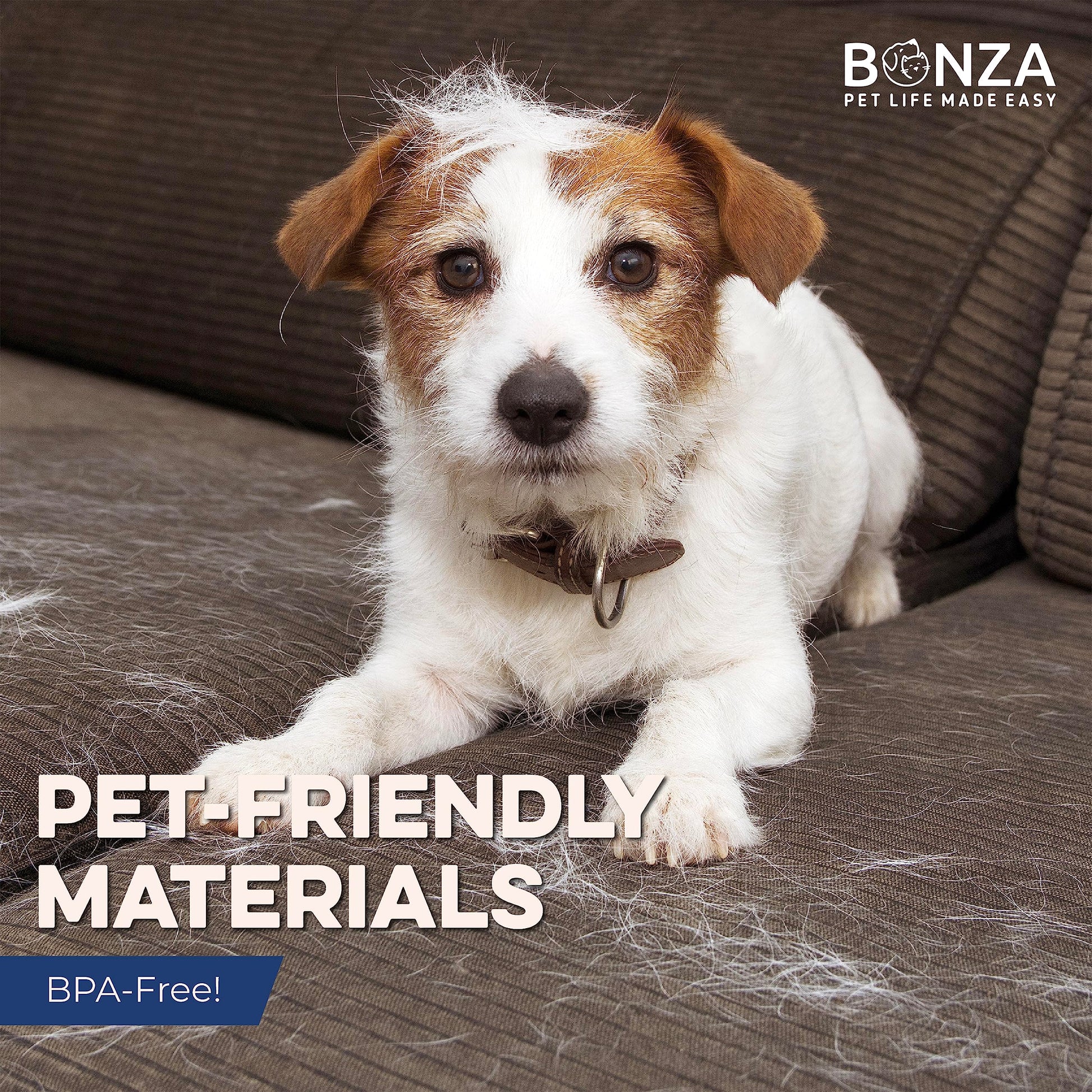• Ultimate Pet Grooming Buddy: The Bonza dog brush handles pet hair and shedding like a pro. This massaging dog brush comes with its easy-to-remove screen and reverse ridges, this pet massage brush quickly cleans pet hair from clothes or furniture. Hair comes off in seconds, leaving the bristles ready for more action