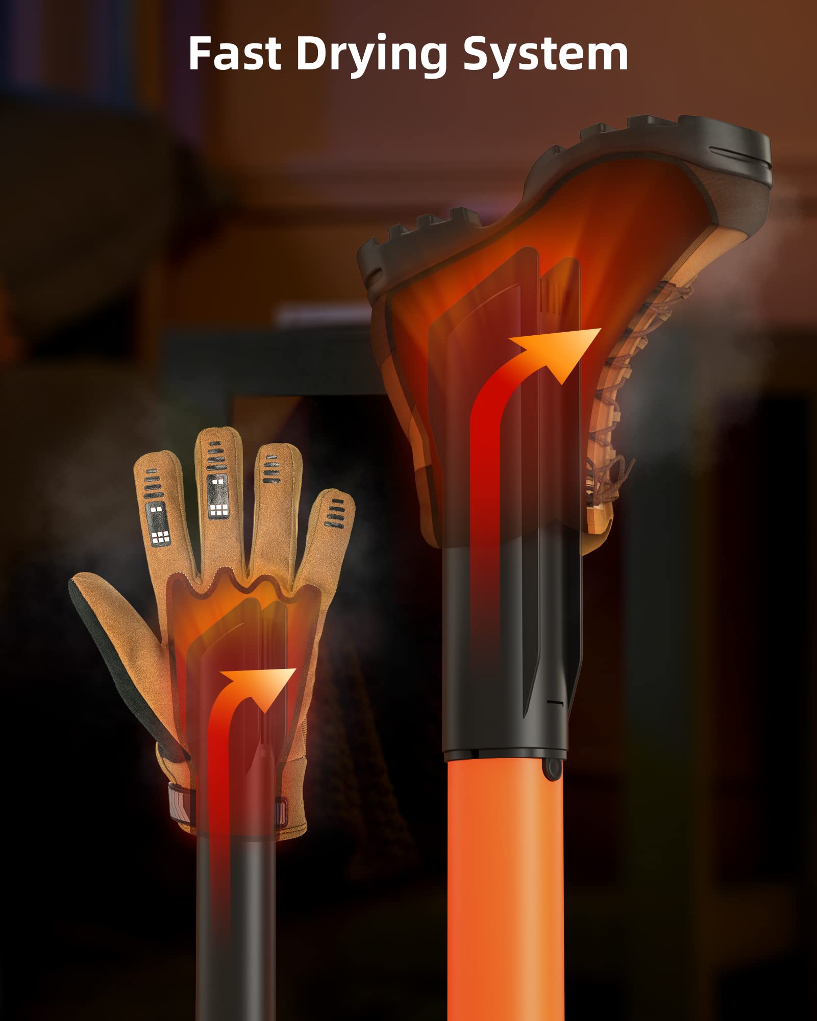 • 【Ultra Quiet】The heat blower of the boot and glove dryer works super silent by gently blowing warm air to drys your footwear, quietly and effectively drying garments overnight.