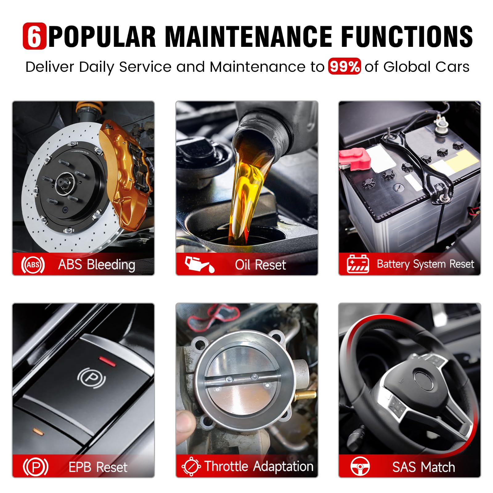 • 【6 Resets, ABS Bleeding/Oil/EPB/SAS/Throttle/BMS】 What can IF742 do for you? Instantly purge air from brake lines to restore brake sensitivity; precisely calibrate maintenance cycles to eliminate false alerts; resolve parking brake issues remotely with a single click; stabilize steering by recalibrating sensor data; optimize idle and acceleration performance for smoother engine operation; and deeply reset battery systems to extend lifespan and range through precise parameter monitoring.