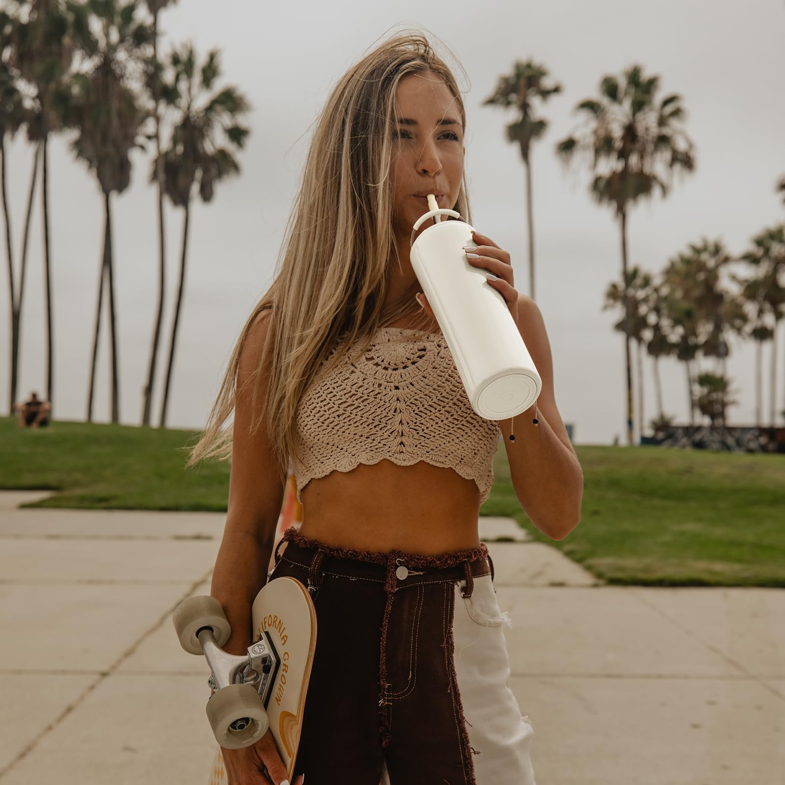 BOTTLE BOTTLE Insulated Water Bottle Coffee Tumblers with Dual-use Lid and Straw Double Walled Iced Travel Coffee Mug for Woman and Man 24oz Stainless Steel Tumbler with Handle(Ivory White)