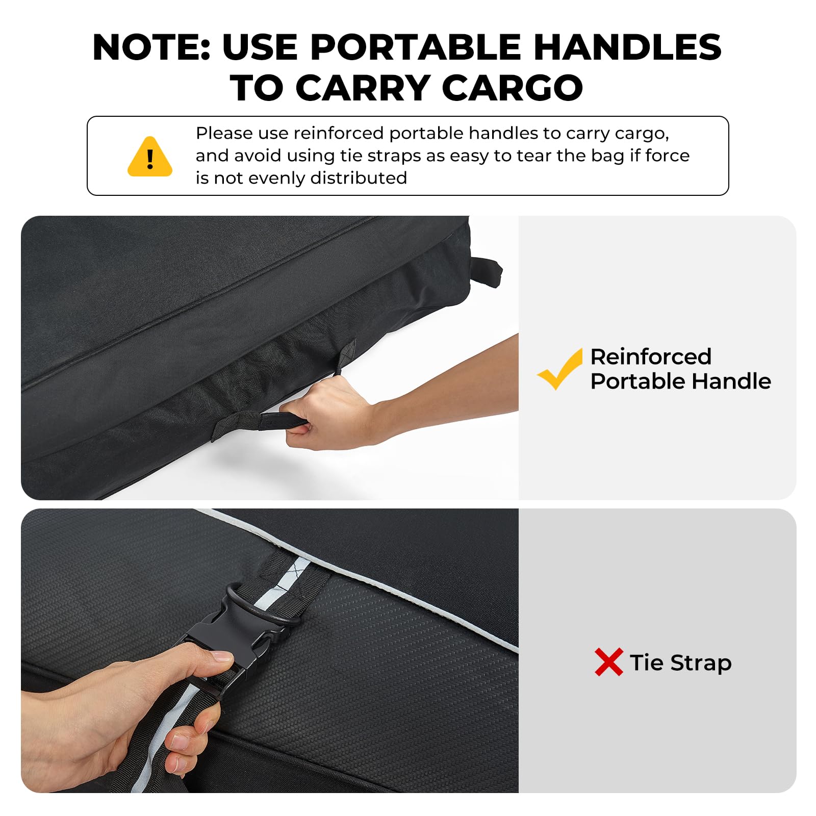 • Easy Installation: BougeRV cargo bag fits all vehicles with raised side rails or roof baskets (not for cars without racks, and don't tie the straps inside the car). Always verify your vehicle's load limit before use. Ideal for any adventure