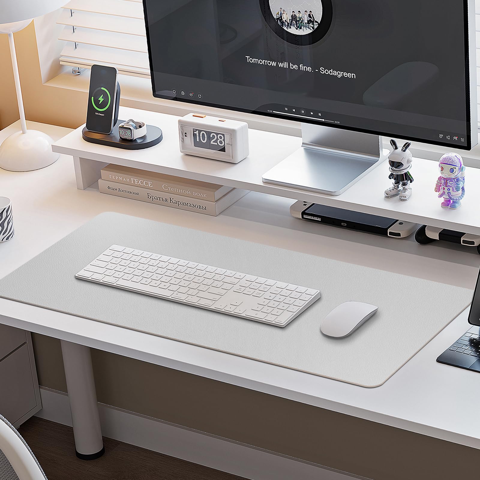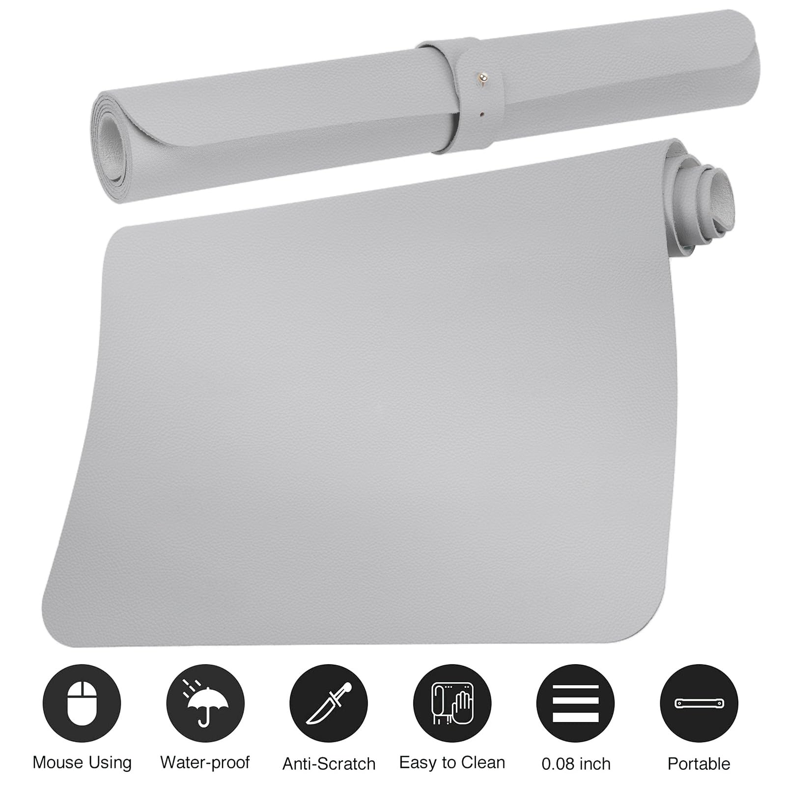 Boutilon Leather Desk Pad Protector,Non-Slip Mouse Pad,Laptop Desk Pad,Office Mouse Mat,Waterproof Leather Desk Blotter,Desk Writing Pad for Office and Home (M-Grey,30"x14")