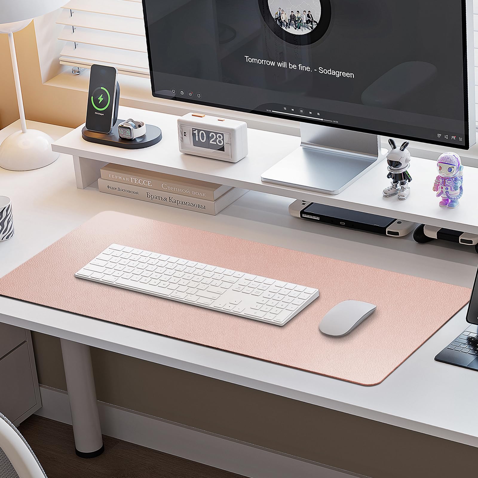 • 【Non-Slip Design】The non-slip backing leather adds stability during everyday use.It can firmly grips the desktop,keeps the pad from sliding. The desk pad can be used as study writing pad keyboard pad or computer table protector, friendly for student daily using,comfortable resting surface for your wrists while typing and using the mouse.