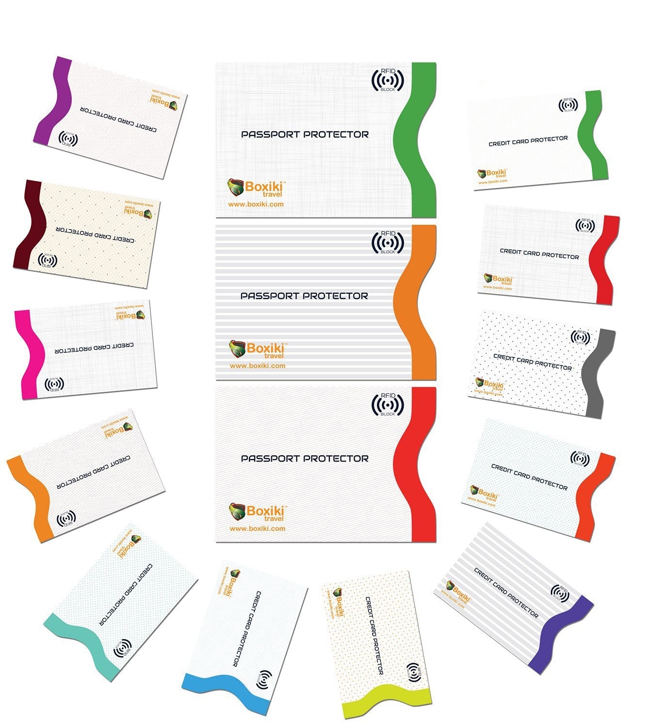 Boxiki Travel Set of 15 RFID, Set with Color Coding | Identity Theft Prevention RFID Blocking Envelopes and Passport Covers (White Collection)