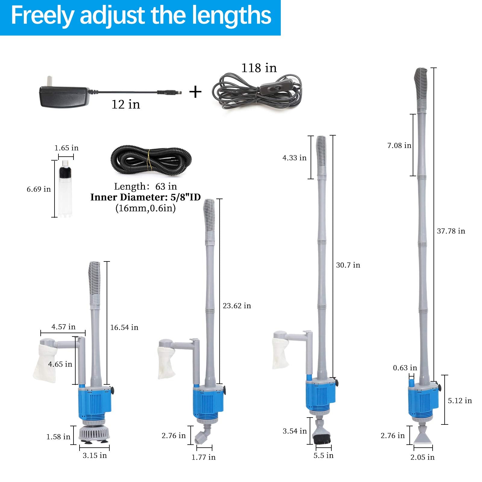 • Multifunctional Aquarium Gravel Cleaner for Aquarium: Boxtech Electric Gravel Cleaner Kit with Water Changer+Sand Washer+Debris Cleaning+Water Filter+Water Shower+Water Flow 6 in 1 functions. Hmax can up to 118 inch, It takes only 0.3h to draw out a 180 gallon tank