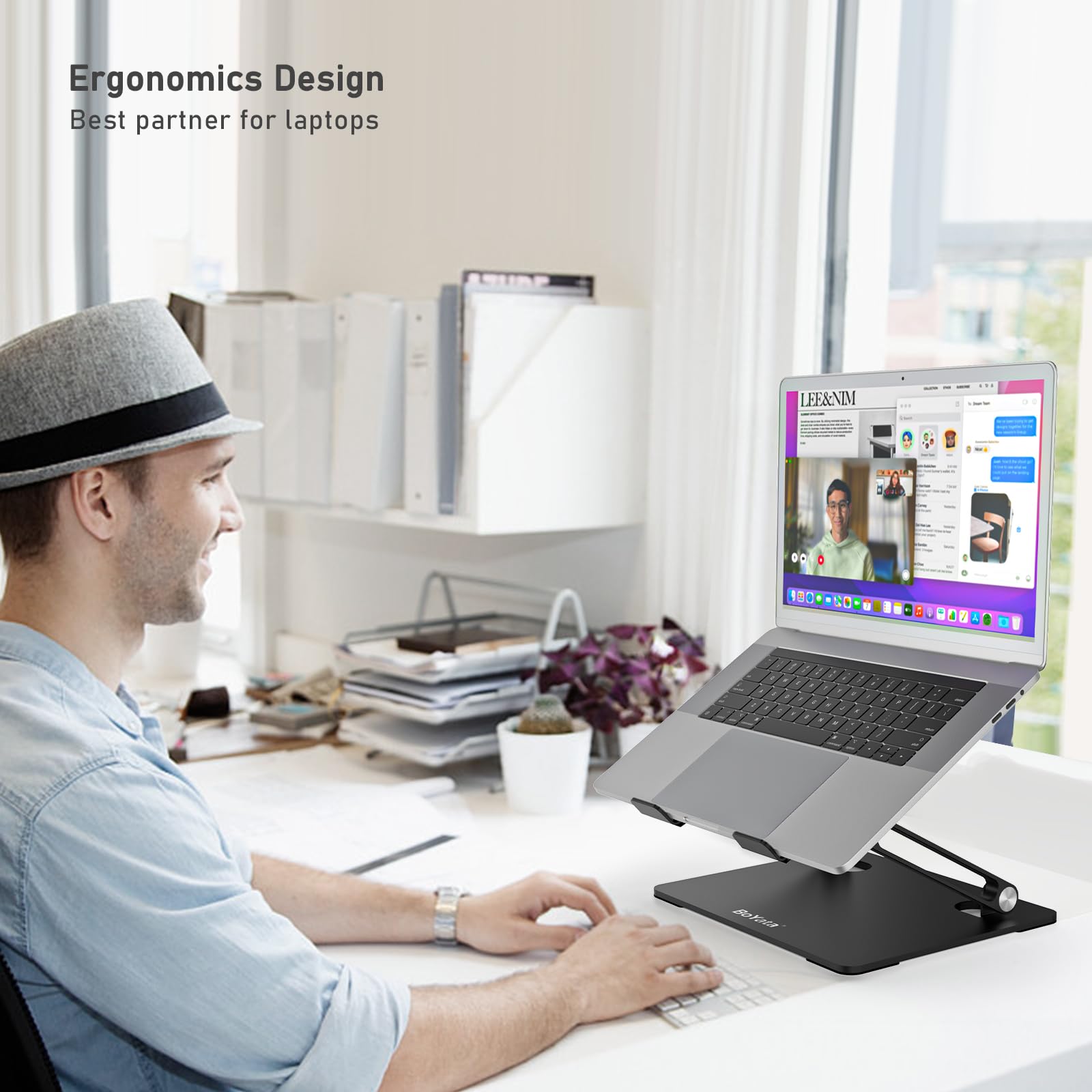 • ERGONOMICS: The Z-type design is good for adjusting to an ideal height for typing, viewing and sitting. Promoting good posture for supporting your back and neck. This laptop holder will help reduce stiffness in your back and neck.