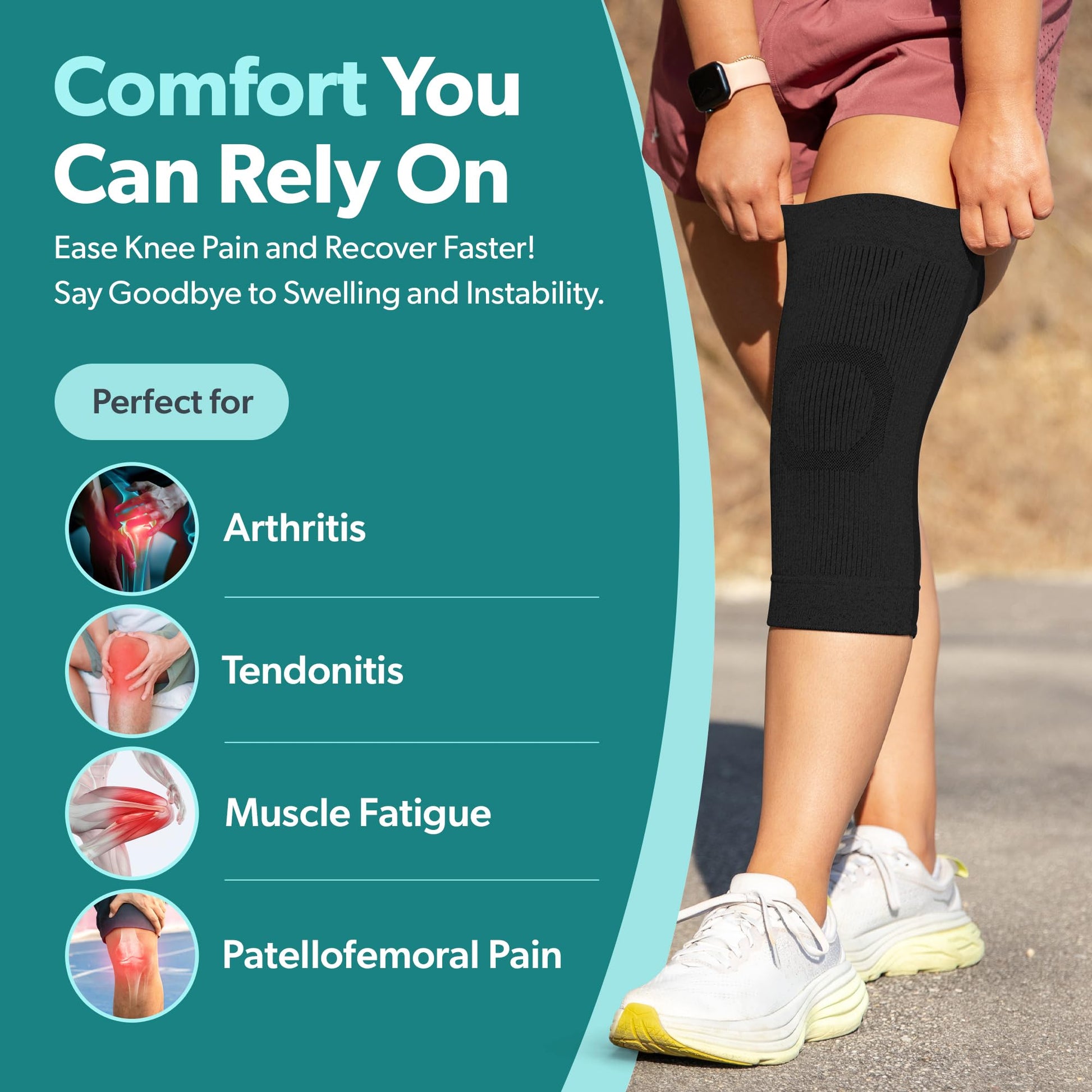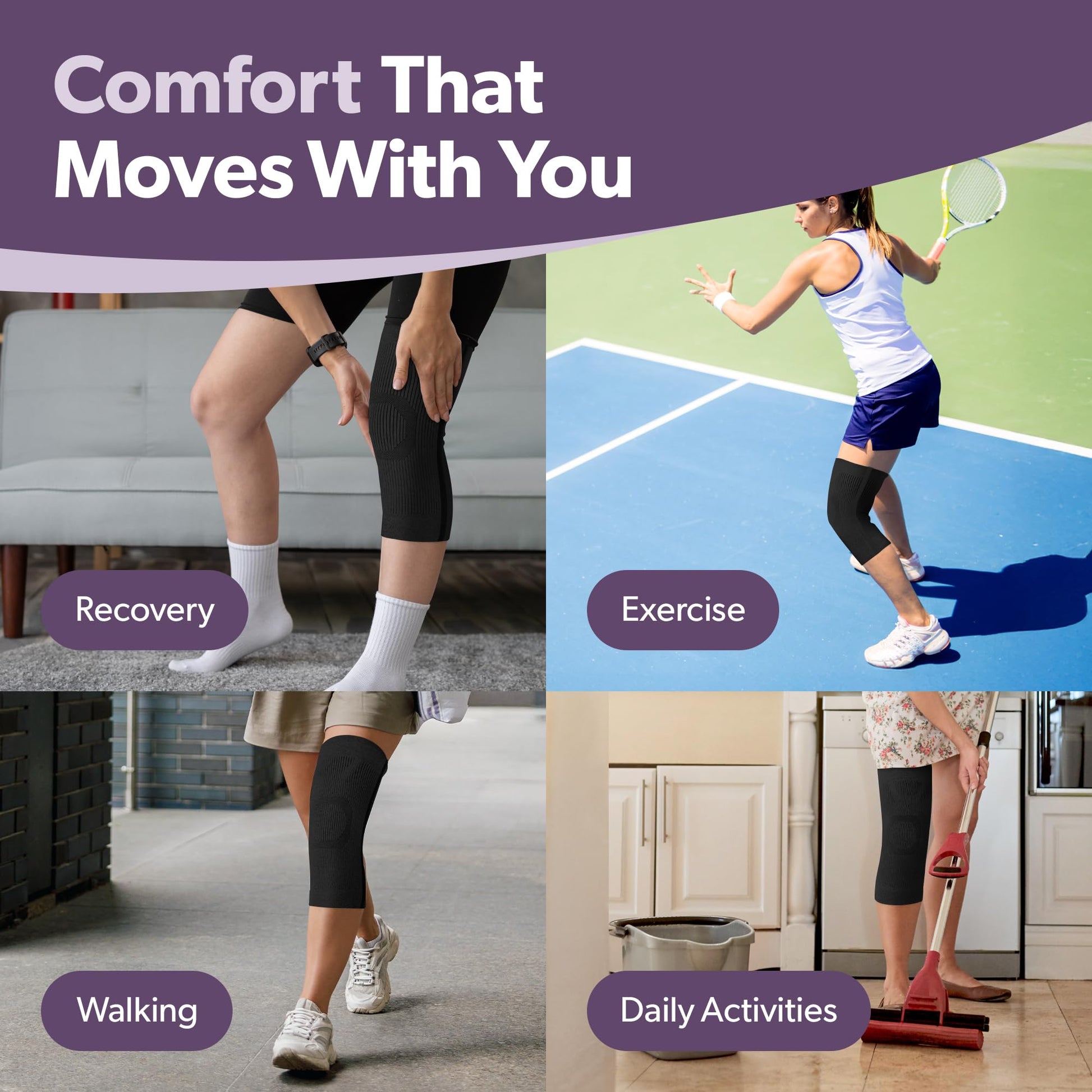 • Advanced Technology for Enhanced Recovery: Promote faster knee recovery and reduce the risk of injury with our advanced knee sleeve technology; designed to provide optimal support and comfort, it aids in recovery while supporting your knee health and performance during everyday activities