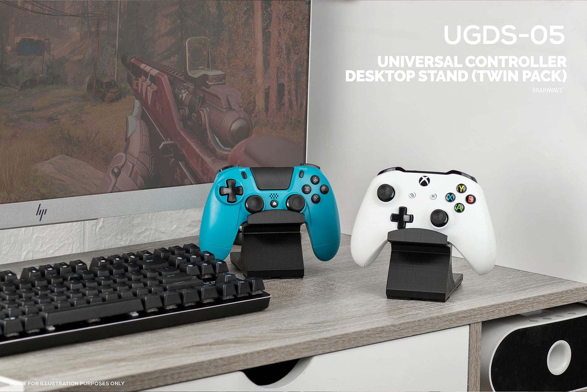 BRAINWAVZ Game Controller Desktop Holder Stand (2 Pack) - Universal Design for Xbox ONE, PS5, PS4, PC, Steelseries, Steam & More, Reduce Clutter UGDS-05