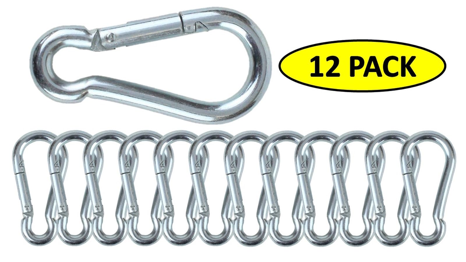 • Black & Silver Heavy Duty Carabiner Snap Hooks with spring gate action for making quick attachments. Corrosion Resistant Zinc Galvanized Steel Carabiner Clip. Carabiner Snap Hooks are Great for Ropes, Chains, Straps, Backpacks, Key Ring, Camping, Hiking, Walking, Travel, Fishing, Home, Dog Leash, Indoor, Outdoor, Equipment, Gear, Tools, Gates, Gym, Hammocks, Water Bottles, etc.