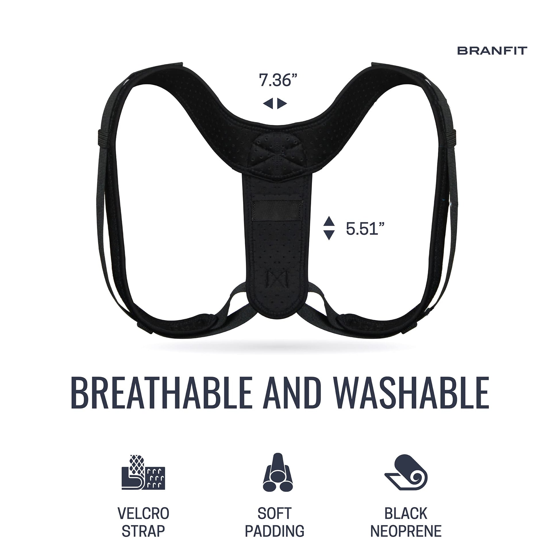 • PAIN RELIEF: Proper posture can reduce headaches, neck, and back strain. Decrease back and neck pain with the BRANFIT Posture Corrector as you retrain your spine. Developed for clavicle and lumbar support. Ideal for minor age-related kyphosis, back pain, and slouched shoulders.