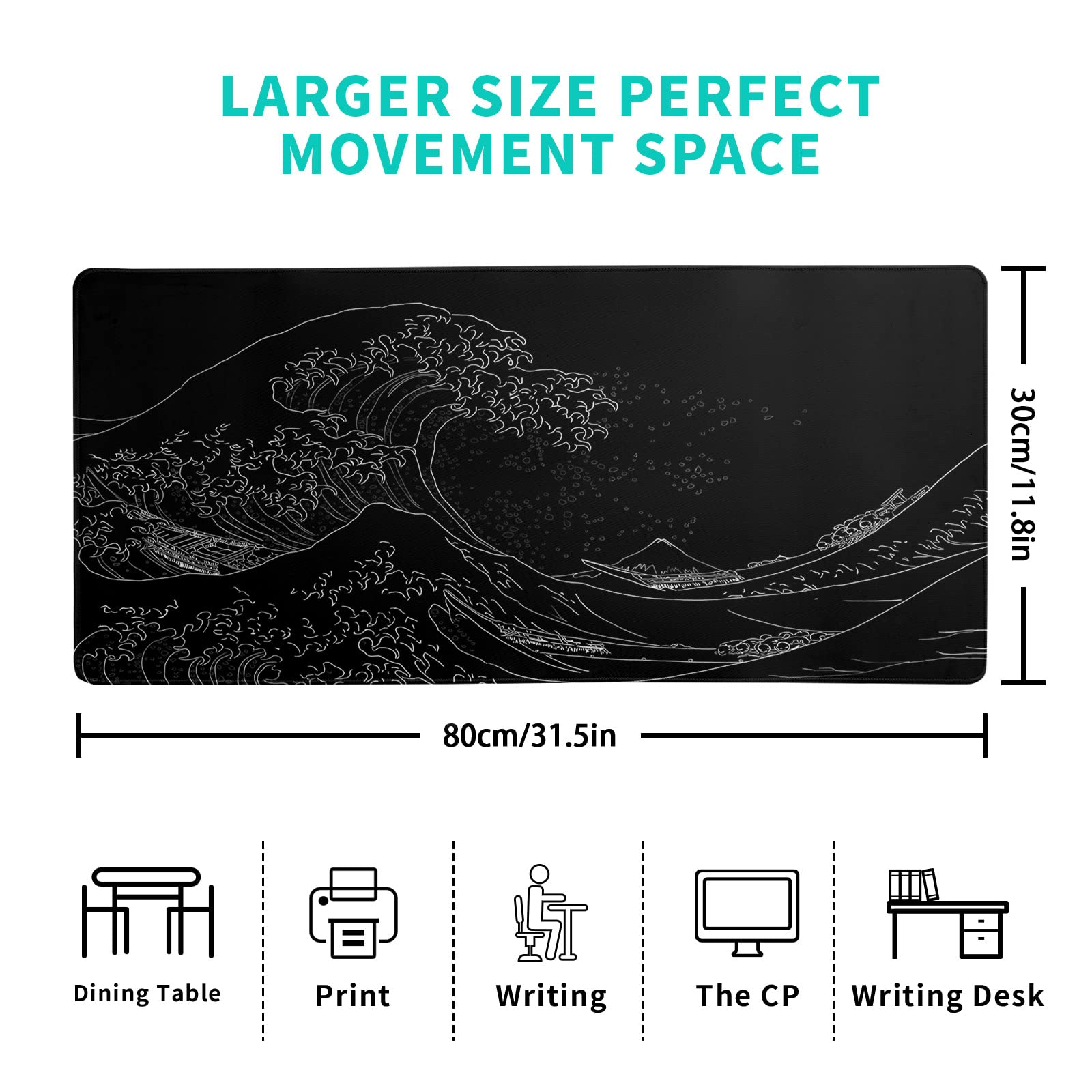 • ❤Extended Size❤ The Japanese Mouse Pad Is Large Enough, 11.8''X 31.5'' ( 800mm X 300mm X 3mm), Will Fit Your Desktop Perfectly And Provide Perfect Movement Space, Offers Plenty Of Room For Gaming Or Office Works All While Protecting Your Desk, Applies To All Types Of Mouse Keyboards And More.