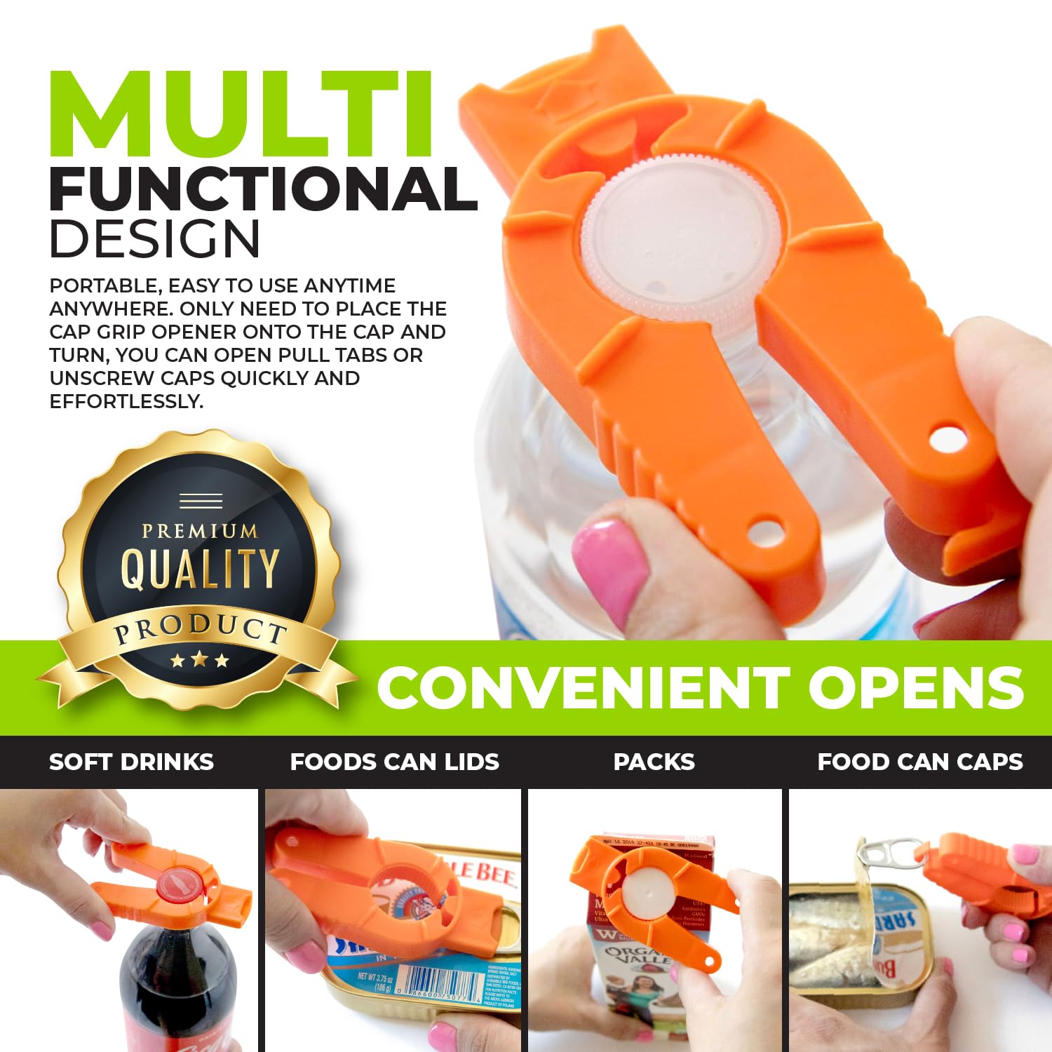 Details: PERFECT FOR THE ELDERLY, ARTHRITIS AND WEAK-HAND SUFFERERS: This bottle and can opener is the ideal assistant for the elderly, sufferers with weak hand strength and rheumatoid arthritis. No need for much effort to open bottle and no need for help from anyone. Provides the strength and leverage needed to open lids and caps effortlessly. Easy enough for children to use. PROTECT YOUR HANDS Open water and soda bottles smoothly. Easily twist off screw caps with a simple twist. Clamp down on food seals to instantly remove ring pull tabs. Hook onto sealed canned foods to simply peel back the metal tab saving your fingers. MULTIFUNCTIONAL: Our opener works on multiple product, like Water and Soda Bottles both large 2L and small, soda cans, beer cans, canned food cans, it also work on ring pull tabs. DURABLE AND ERGONOMIC DESIGN: Our bottle and can opener is designed to be ergonomic to open lids of water bottles, soft drink bottles, soda and beer cans, and food pull out can lids. It is easy to use, especially for the elderly, arthritis and weak-hand sufferers. Only need to place the cap grip opener onto the cap and turn, you can open pull tabs or unscrew caps quickly and effortlessly.