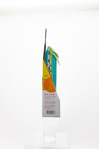 • Crinkly leaves and colorful fabric engage baby