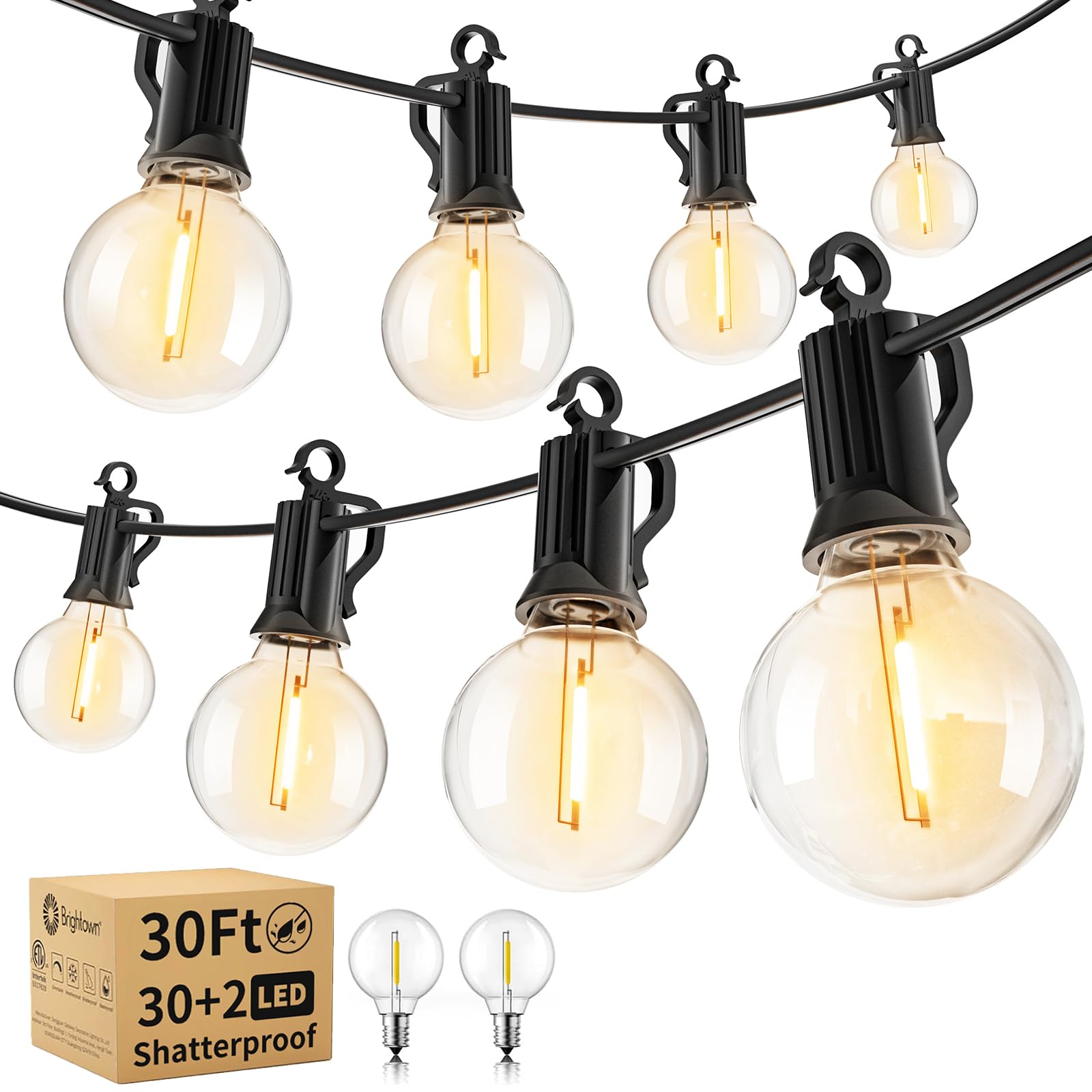 • Super Bright Outdoor String Lights: 30 feet long lights for backyard come with 30 G40 shatterproof LED globe bulbs. End to end connect up to 24 strands. Great for outdoor and indoor decorations.