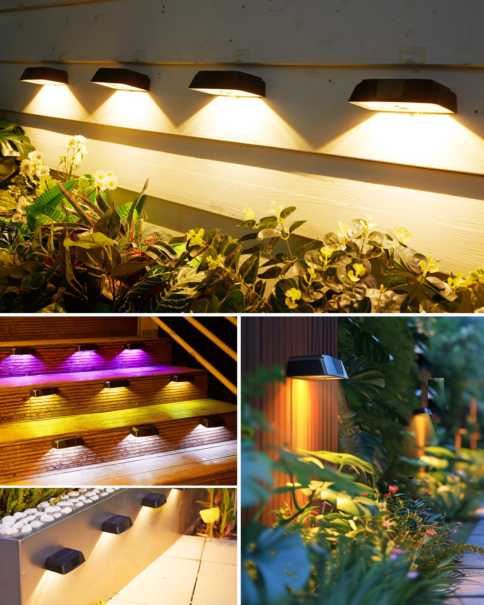 • Control Each Solar Powered Fence Light Individually: Each solar deck light has an independent switch. You can customize the color and mode of each solar lights outside according to your party theme, such as red, white and blue for Independence Day, red and white, blue and white, and RGB for Christmas