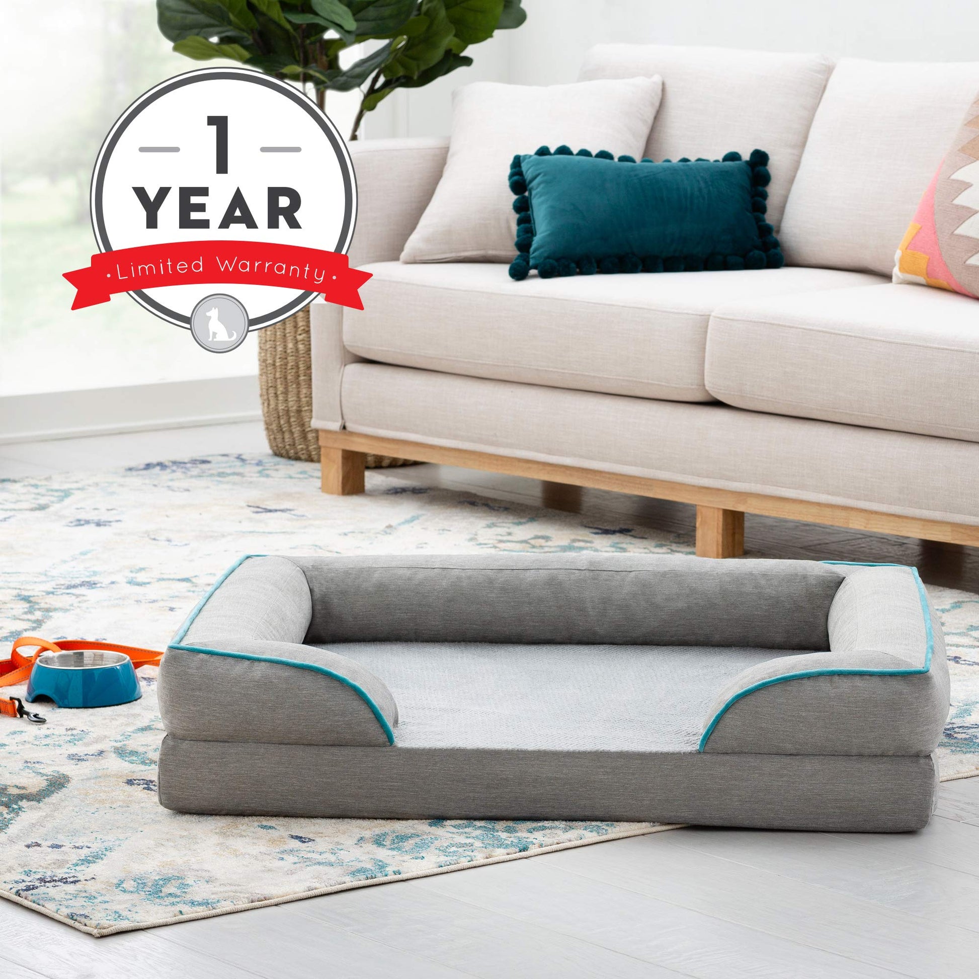 • A thick bolster filled with shredded memory foam creates a sense of security for your pet and provides a place for them to lay their head