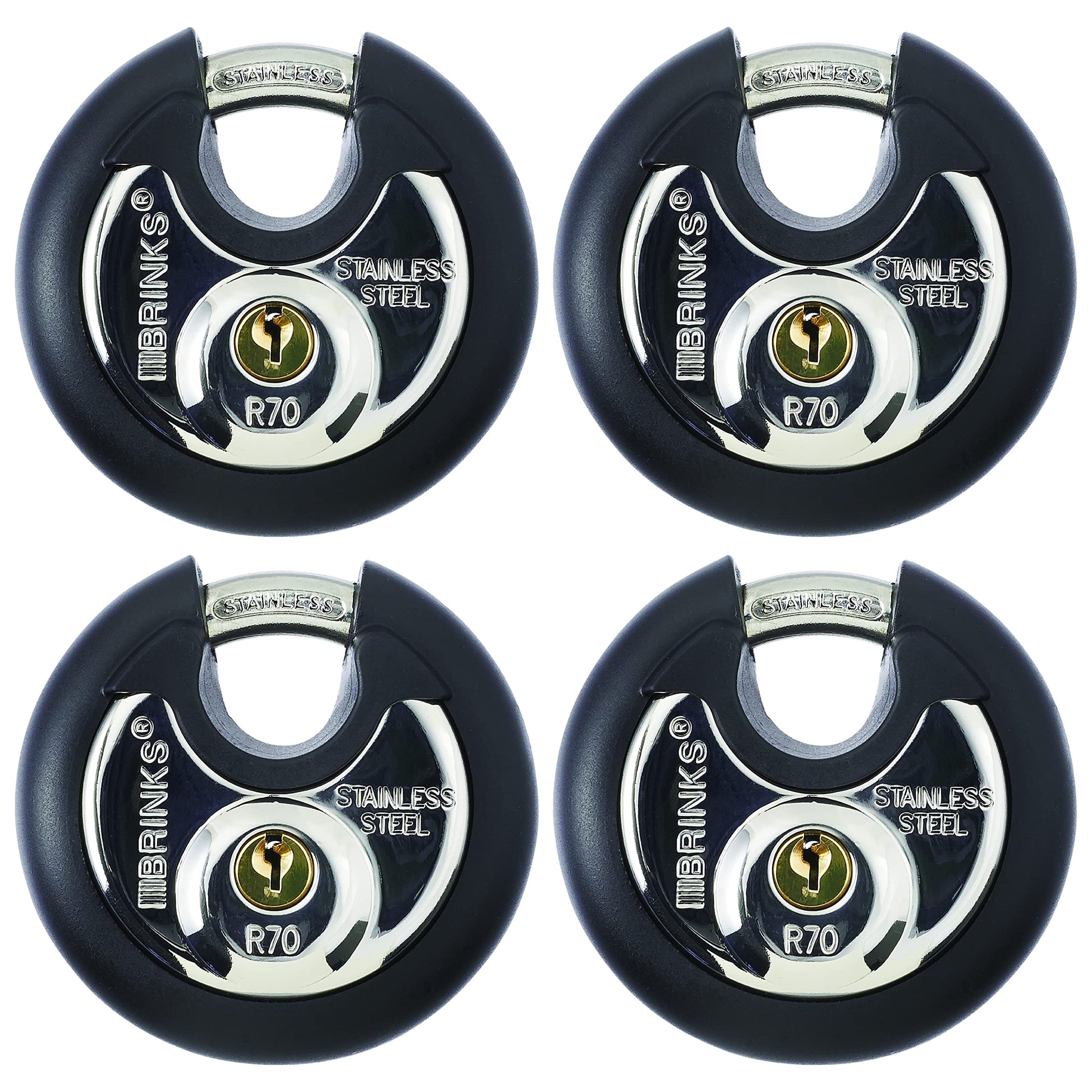 BRINKS Heavy Duty Padlock with Key - 70mm Discus Keyed Lock for Storage Shed, Garage, Storage Lockers, Sliding Doors, Tool Box, and Cabinets, 4 Pack