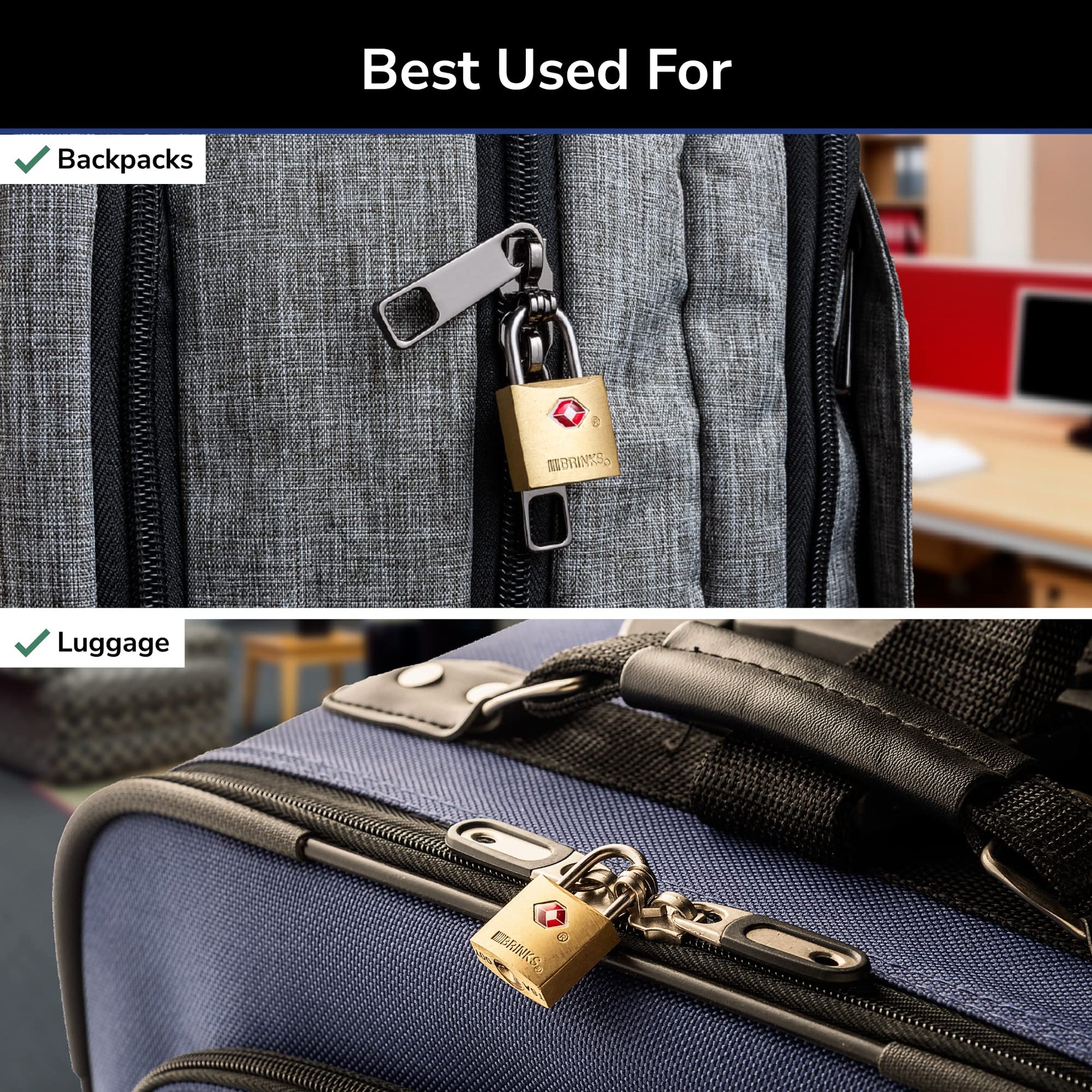 • BRINKS QUALITY: Trust BRINKS, a global leader in security-related products and services, for reliable protection with our travel bag locks