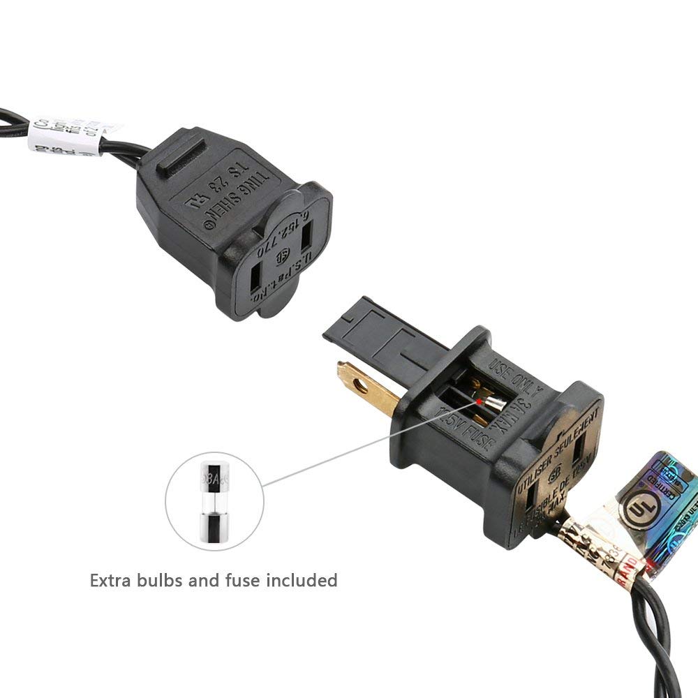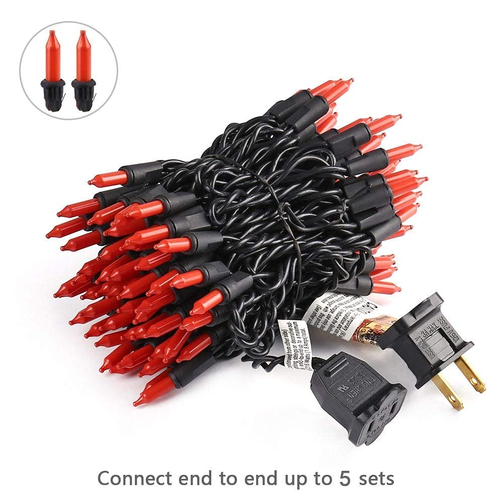 • Connectable Mini Orange Lights: Connect end to end up to 5 sets(500 lights), allow you to decorate your home both inside and outside with your desired length; UL Certified great value and quality. Replaceable fuse plug. Extra regular bulbs and fuse included.