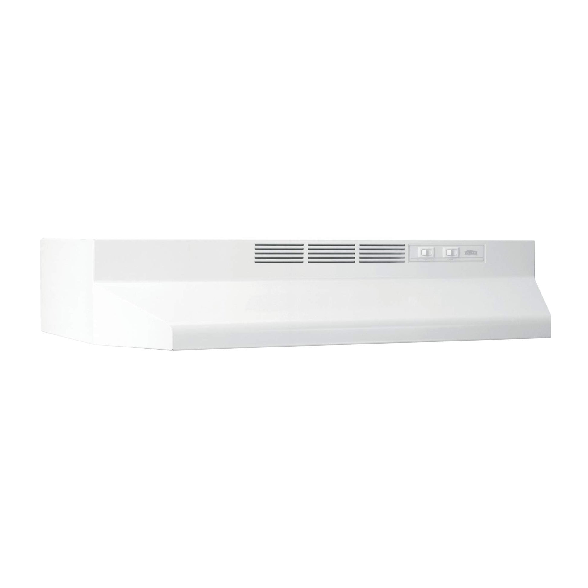 Upgrade your kitchen with the Broan Ductless Range Hood Insert and Incandescent Light! This versatile insert is the perfect solution to your ventilation needs serving as both an exhaust fan and overhead light for your stove. The white unit is designed to fit neatly underneath your cabinets to provide quality airflow in your kitchen. It installs as a non-ducted range hood with a charcoal filter that effectively removes smoke and odors from your cook space. The protective lamp lens distributes light evenly over the cooktop and accepts up to 75W bulb (not included). It's designed with smooth surfaces that clean easily and quick-release filters that can go in the dishwasher. Install the insert at least 18' above cook top. The sides are mitered and the bottom edge hemmed, with no sharp edges for safety and good looks. The unit has a two-speed fan switch and separate light switch and the motor is permanently lubricated. For your convenience, this range hood can work in an ADA-compliant application and includes a 1 year limited warranty. Enhance your home today with the Broan Ductless Range Hood Insert and Light!