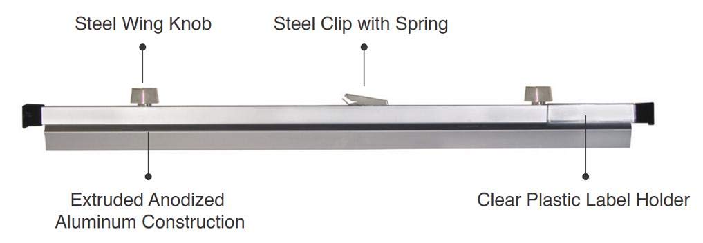 Details: Extruded anodized aluminum clamps will hold up to 100 sheets each securely without punching or stapling. Internal steel spring holds clamp open for easy loading. Heavy duty chrome plated steel wing knobs open and close the clamp. Chrome plated steel clip includes a spring to clip onto pivot brackets. Includes Snap-On clear plastic label holder and labels. Clamps are compatible with all other major manufacturers' racks.
