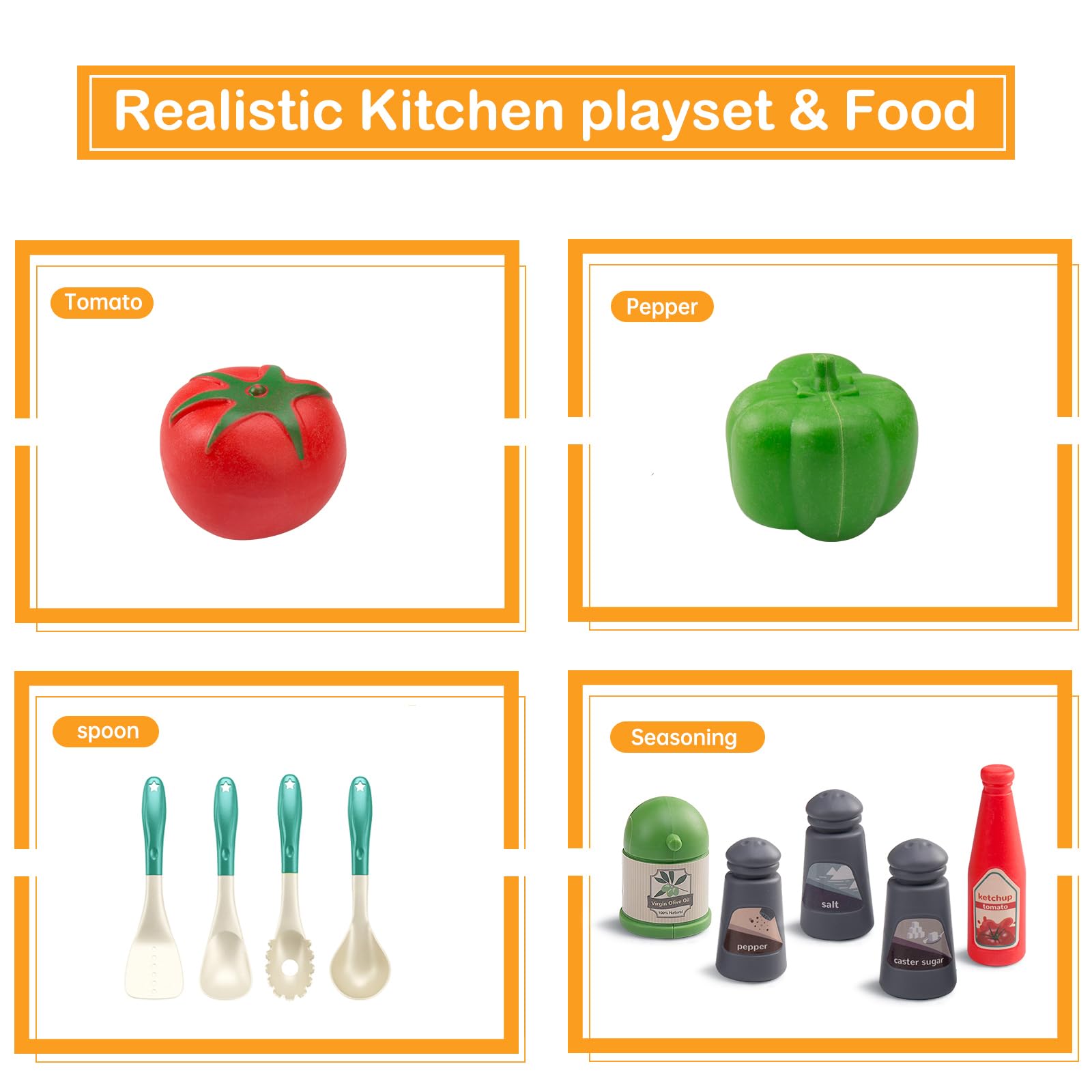 • Realistic Kitchen Playset & Food - Realistic cooking set encourages imagination, dexterity, and creative play, Teaches your little ones to be mother's little helper. The kettle can be filled with water and the spout can be pulled out, Give your child a gift that creates countless happy moments!
