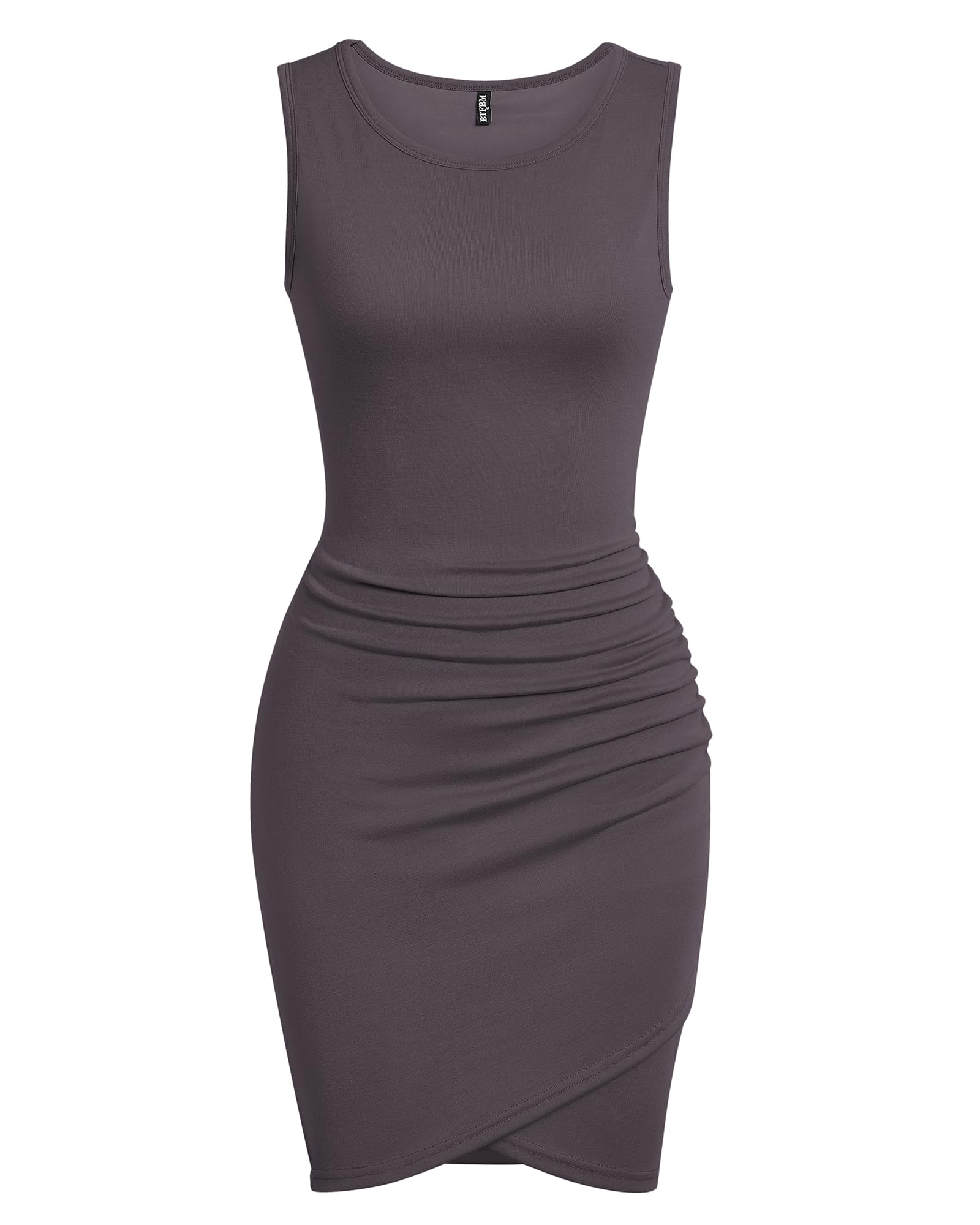 BTFBM Women Summer Dresses 2025 Sleeveless Tank Crew Neck Casual Ruched Bodycon Party Club Beach Short Mini Dress(Dark Grey, Small)
