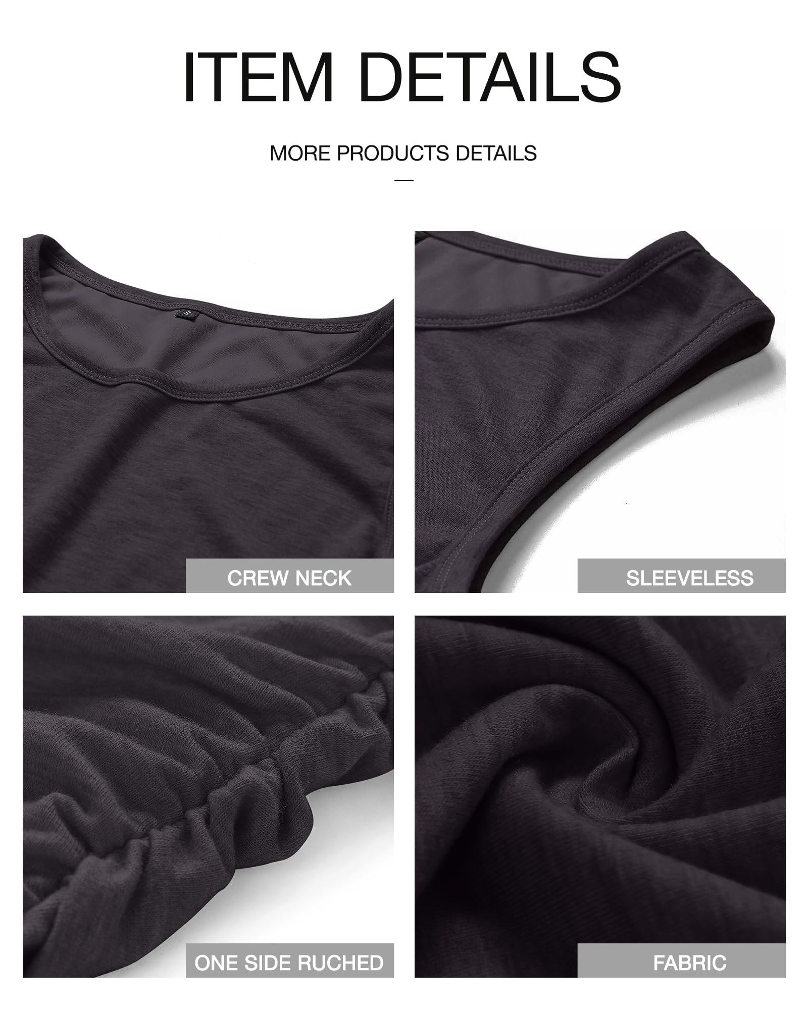 • FEATURES: S=US 4-6, M=US 8-10, L=US 12-14, XL=US 16 / Summer Dresses For Women 2025 / Sleeveless / Crew Neck Tank Dress / One Side Ruched Detail / Slim Fit / Soft Stretch Fabric / Above The Knee