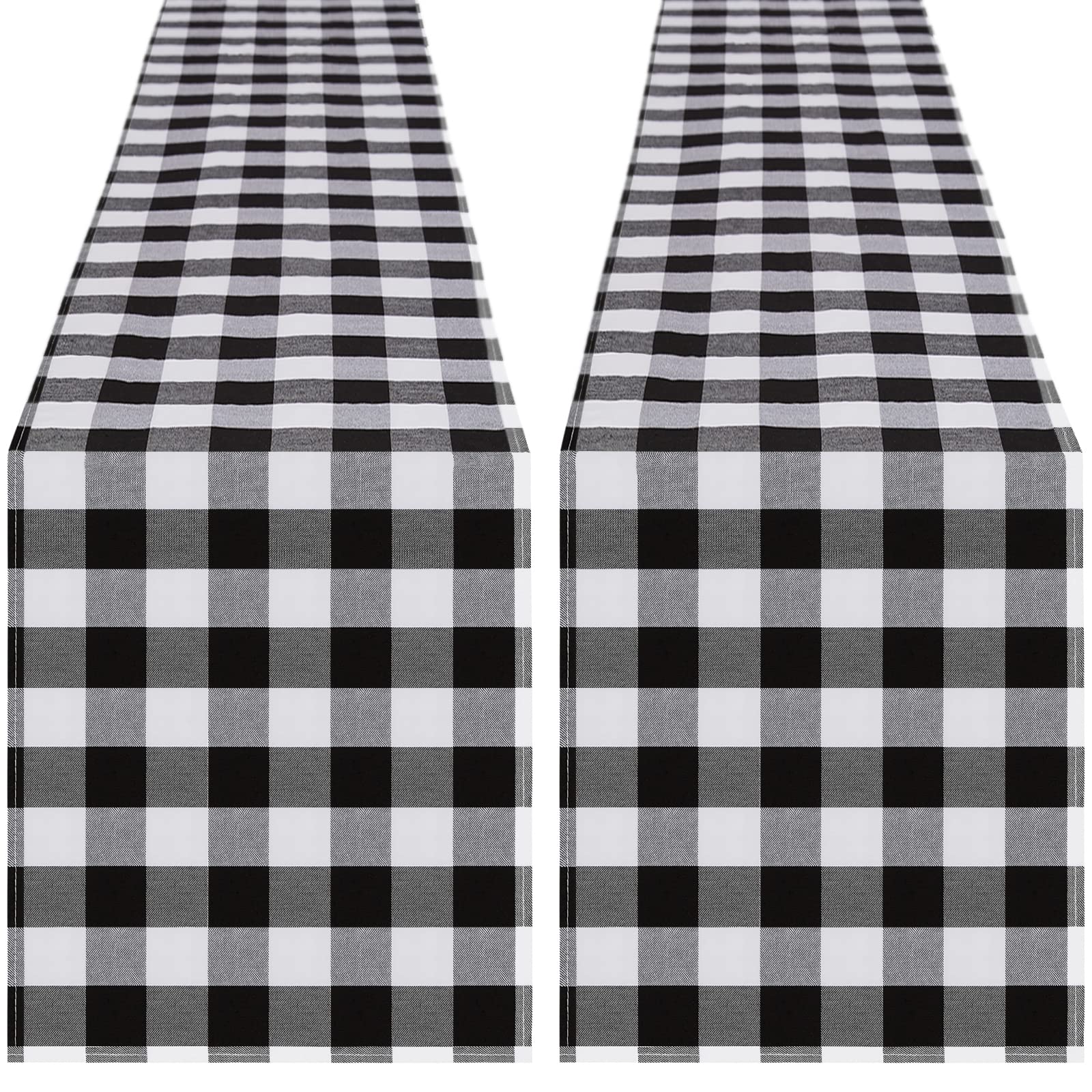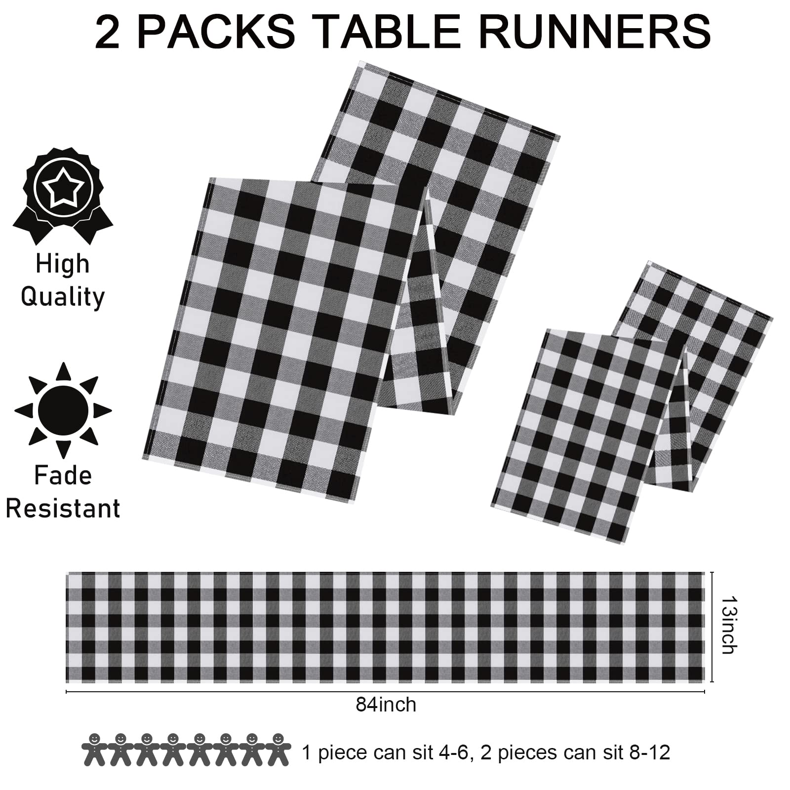 Buffalo Plaid Table Runners 2 Packs 13x84 Inches Black and White Check Table Runner Fall Thanksgiving Table Runners for Parties