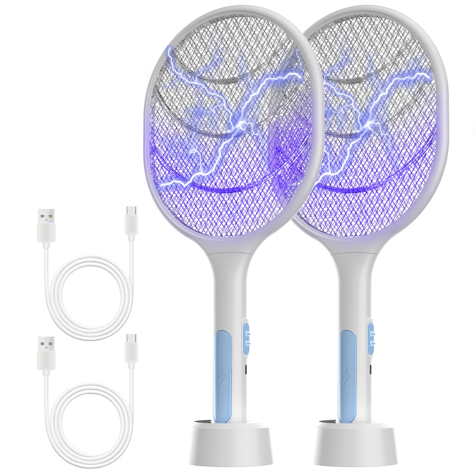 Bug Zapper 2 Pack, VANELC Electric Fly Swatter Racket Fly Zapper, 3000 Volt USB Rechargeable Fly Trap Mosquito Zapper Pest Insects Control for Home, Kitchen, Office, Outdoor